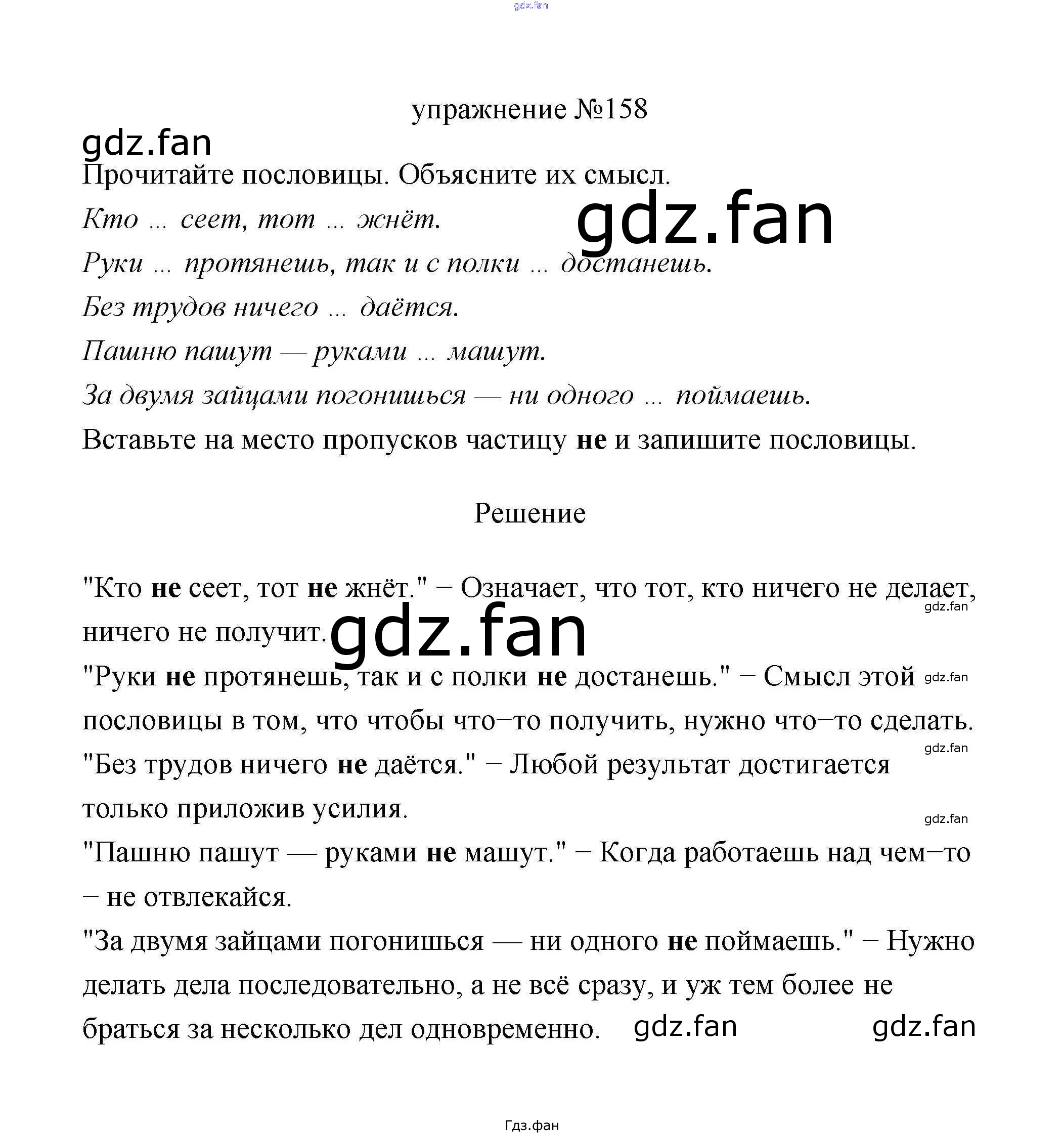 Проверка домашнего задания всегда занимает большое количество времени. На помощь приходит ГДЗ фан по Русскому языку третьего класса. Здесь собраны популярные ответы на 158 (стр. 92) Русский язык 3 класс Климанова Л.Ф.