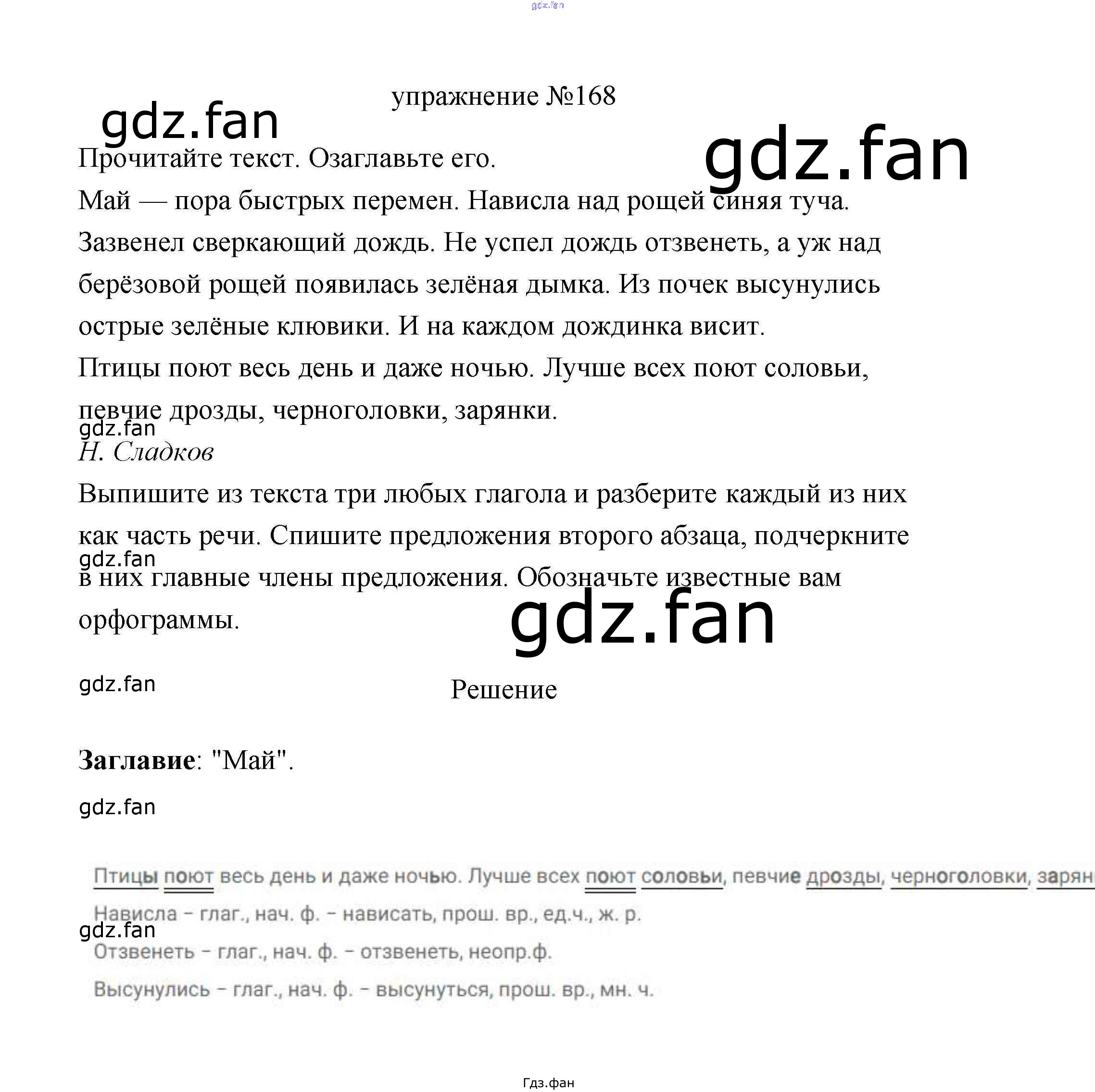 Проверка домашнего задания всегда занимает большое количество времени. На помощь приходит ГДЗ фан по Русскому языку третьего класса. Здесь собраны популярные ответы на 168 (стр. 98) Русский язык 3 класс Климанова Л.Ф.