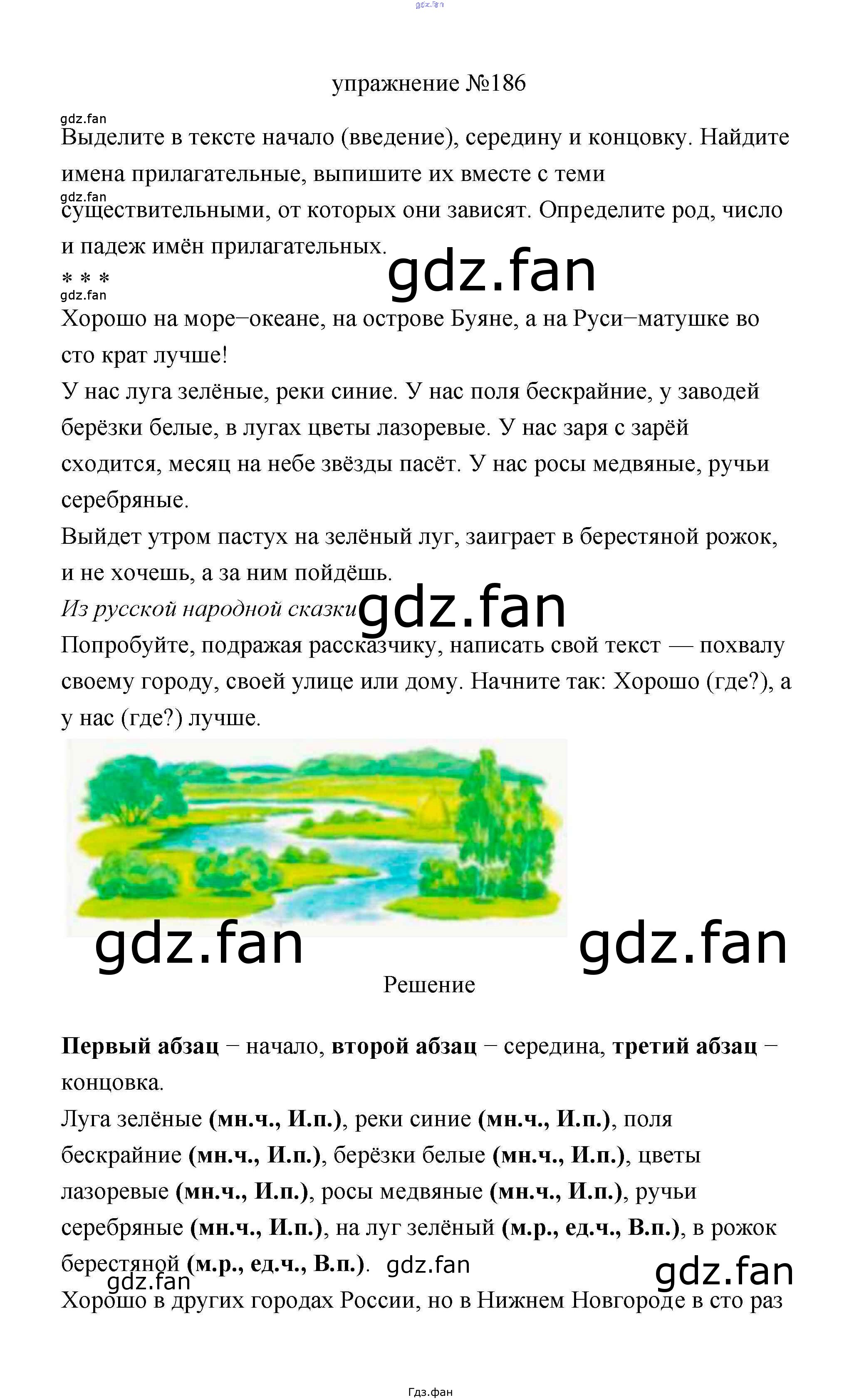 Проверка домашнего задания всегда занимает большое количество времени. На помощь приходит ГДЗ фан по Русскому языку третьего класса. Здесь собраны популярные ответы на 186 (стр. 110) Русский язык 3 класс Климанова Л.Ф.