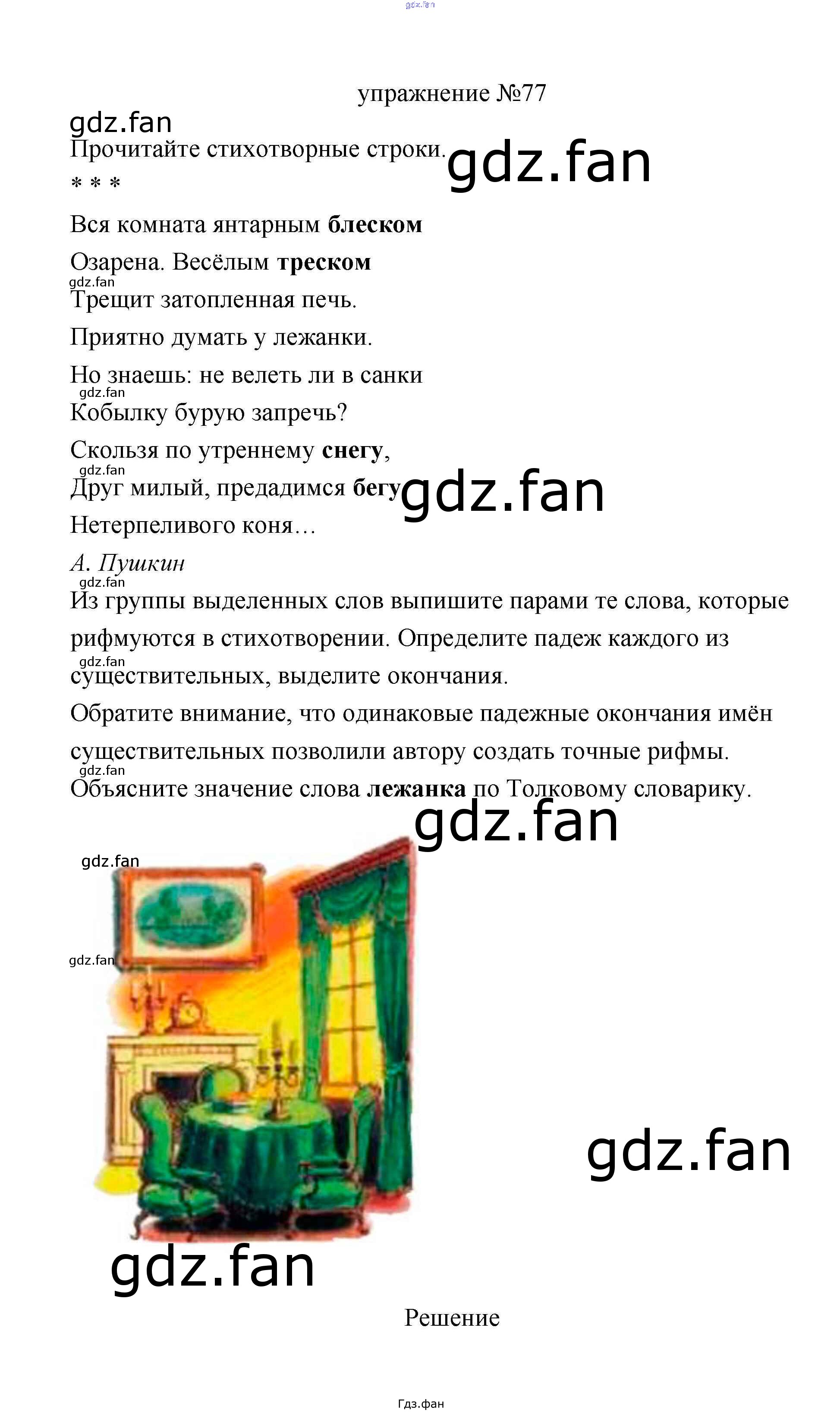 Проверка домашнего задания всегда занимает большое количество времени. На помощь приходит ГДЗ фан по Русскому языку третьего класса. Здесь собраны популярные ответы на 77 (стр. 43) Русский язык 3 класс Климанова Л.Ф.