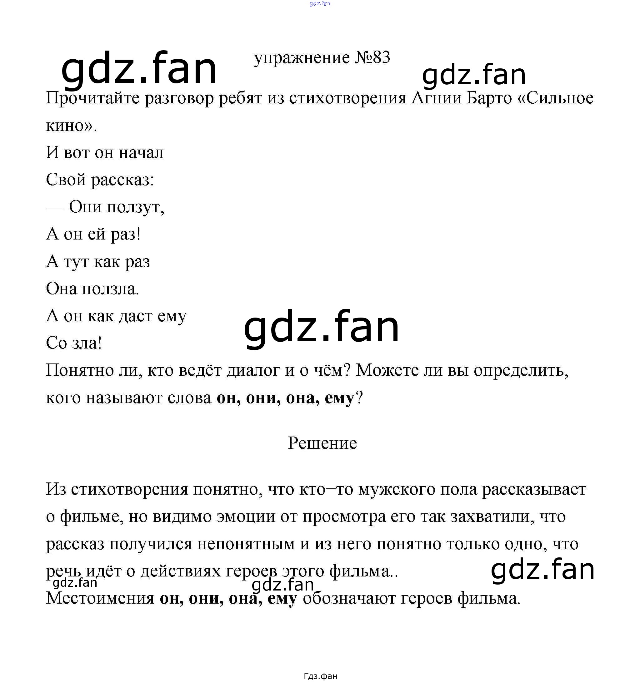 Проверка домашнего задания всегда занимает большое количество времени. На помощь приходит ГДЗ фан по Русскому языку третьего класса. Здесь собраны популярные ответы на 83 (стр. 48) Русский язык 3 класс Климанова Л.Ф.