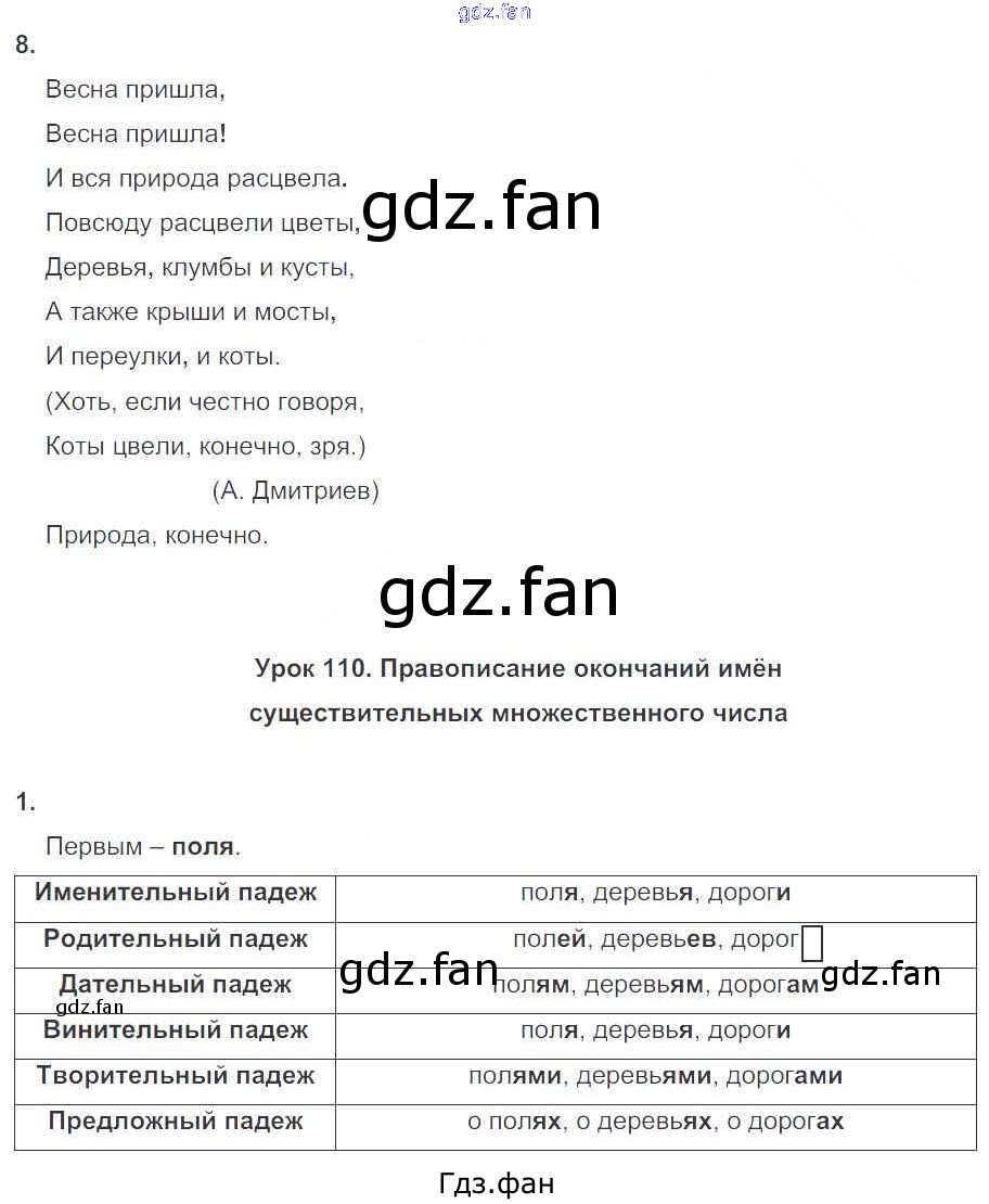 Проверка домашнего задания всегда занимает большое количество времени. На помощь приходит ГДЗ фан по Русскому языку третьего класса. Здесь собраны популярные ответы на 26 (№ 8. Урок 110 Правописание окончаний имён существительных множественного числа № 1) Русский язык 3 класс рабочая тетрадь Пишем грамотно Кузнецова М.И.
