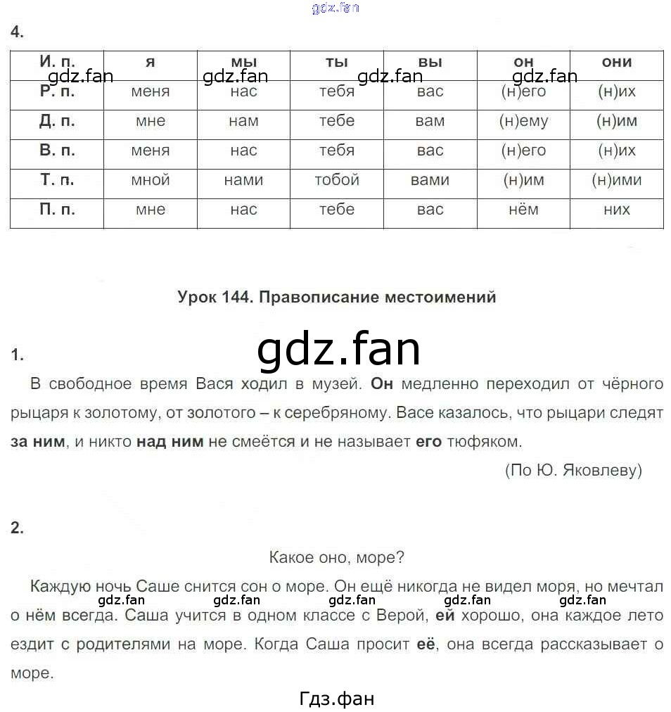 Проверка домашнего задания всегда занимает большое количество времени. На помощь приходит ГДЗ фан по Русскому языку третьего класса. Здесь собраны популярные ответы на 56 (№ 4. Урок 144 Правописание местоимений № 1, 2) Русский язык 3 класс рабочая тетрадь Пишем грамотно Кузнецова М.И.