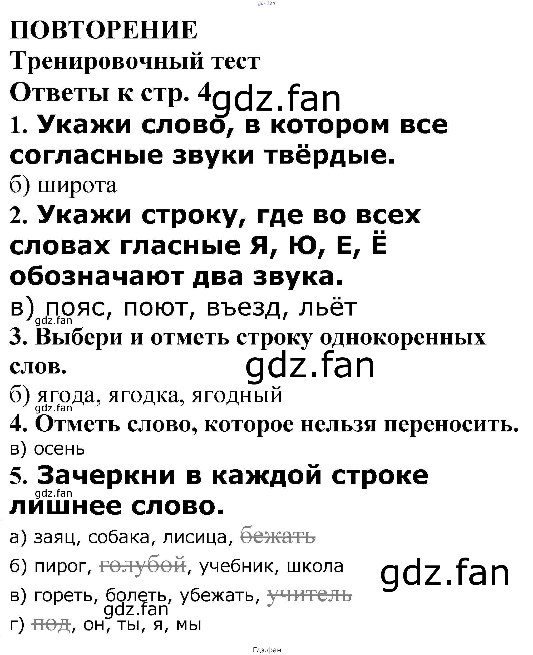 Проверка домашнего задания всегда занимает большое количество времени. На помощь приходит ГДЗ фан по Русскому языку третьего класса. Здесь собраны популярные ответы на 4 (Тренировочный тест № 1, 2, 3, 4, 5) Русский язык 3 класс проверочные и контрольные работы Максимова Т.Н.