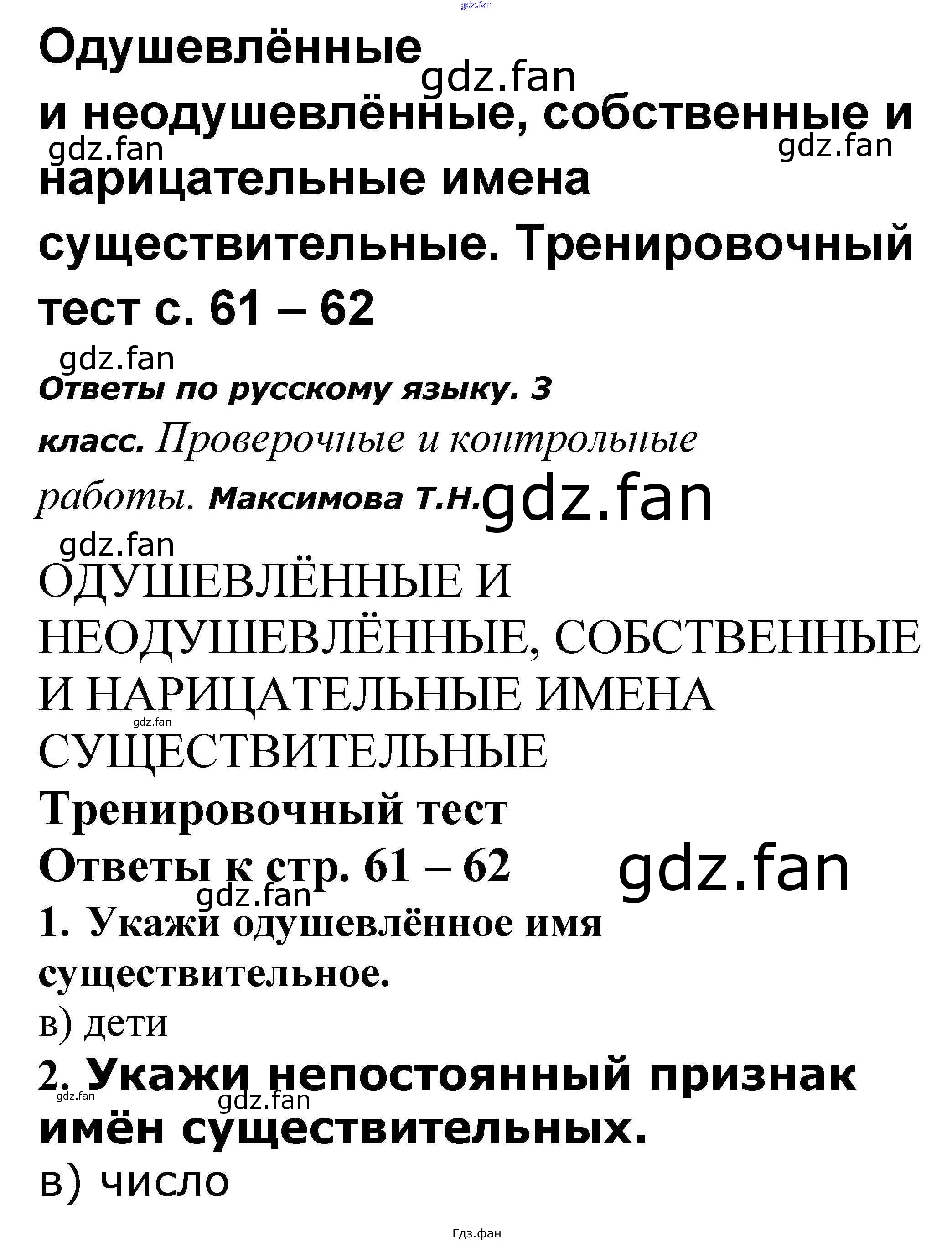 Проверка домашнего задания всегда занимает большое количество времени. На помощь приходит ГДЗ фан по Русскому языку третьего класса. Здесь собраны популярные ответы на 61-62 (Тренировочный тест № 1, 2, 3, 4, 5) Русский язык 3 класс проверочные и контрольные работы Максимова Т.Н.