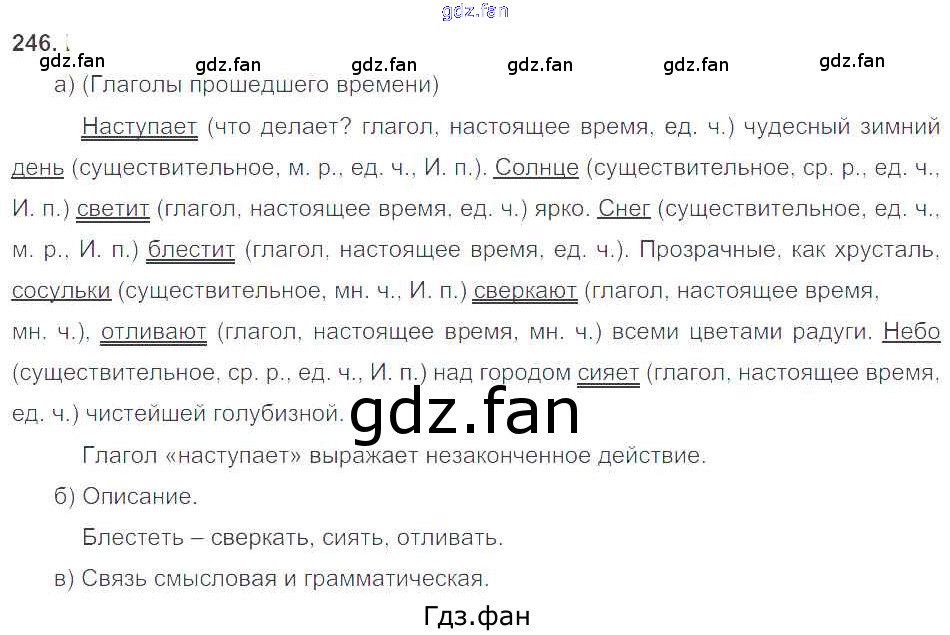 Проверка домашнего задания всегда занимает большое количество времени. На помощь приходит ГДЗ фан по Русскому языку третьего класса. Здесь собраны популярные ответы на 246 (стр. 148) Русский язык 3 класс Нечаева Н.В.