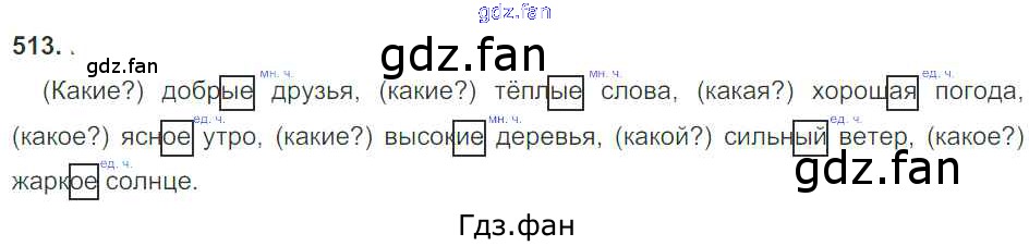 Проверка домашнего задания всегда занимает большое количество времени. На помощь приходит ГДЗ фан по Русскому языку третьего класса. Здесь собраны популярные ответы на 513 (стр. 65) Русский язык 3 класс Рамзаева Т.Г.