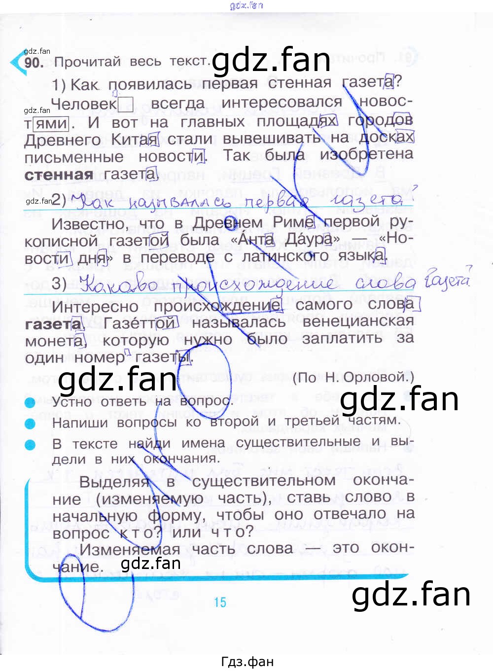 Проверка домашнего задания всегда занимает большое количество времени. На помощь приходит ГДЗ фан по Русскому языку третьего класса. Здесь собраны популярные ответы на 15 (№ 90) Русский язык 3 класс рабочая тетрадь Рамзаева Т.Г.