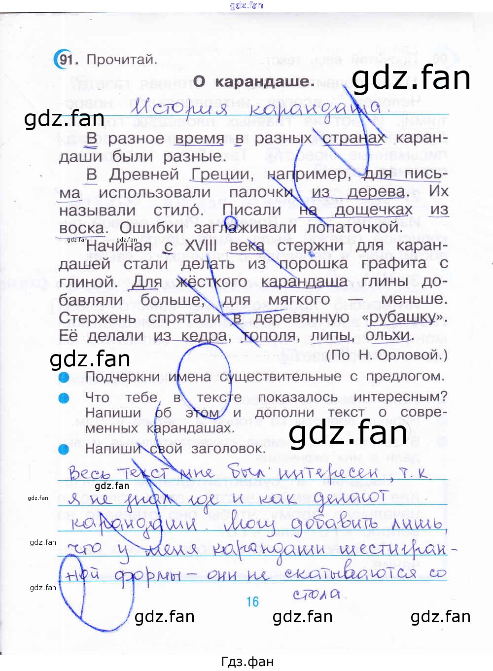 Проверка домашнего задания всегда занимает большое количество времени. На помощь приходит ГДЗ фан по Русскому языку третьего класса. Здесь собраны популярные ответы на 16 (№ 91) Русский язык 3 класс рабочая тетрадь Рамзаева Т.Г.