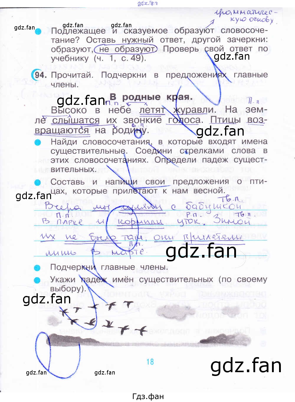 Проверка домашнего задания всегда занимает большое количество времени. На помощь приходит ГДЗ фан по Русскому языку третьего класса. Здесь собраны популярные ответы на 18 (№ 94) Русский язык 3 класс рабочая тетрадь Рамзаева Т.Г.