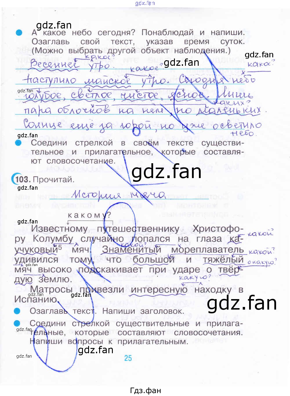 Проверка домашнего задания всегда занимает большое количество времени. На помощь приходит ГДЗ фан по Русскому языку третьего класса. Здесь собраны популярные ответы на 25 (№ 103) Русский язык 3 класс рабочая тетрадь Рамзаева Т.Г.