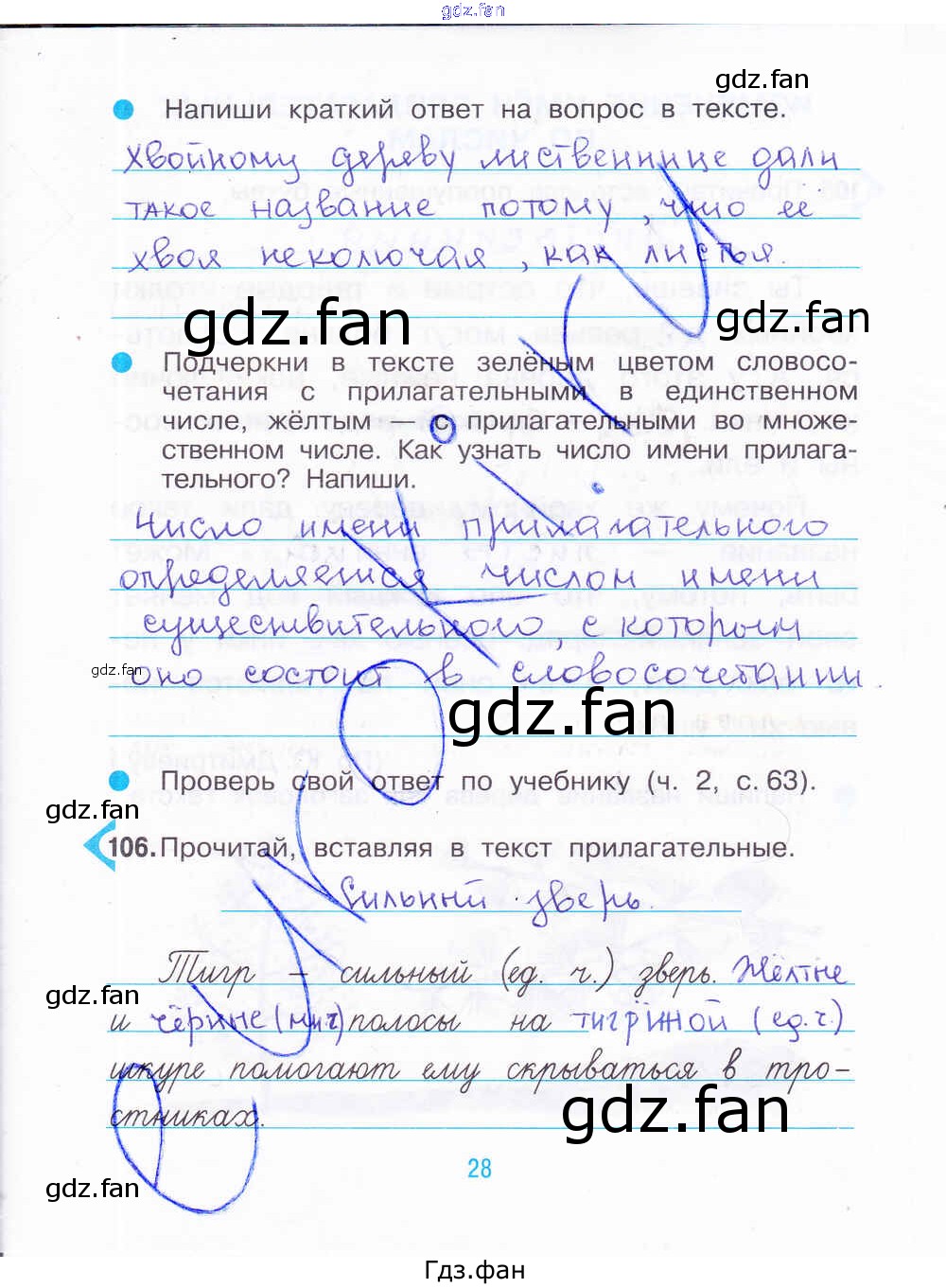 Проверка домашнего задания всегда занимает большое количество времени. На помощь приходит ГДЗ фан по Русскому языку третьего класса. Здесь собраны популярные ответы на 28 (№ 106) Русский язык 3 класс рабочая тетрадь Рамзаева Т.Г.