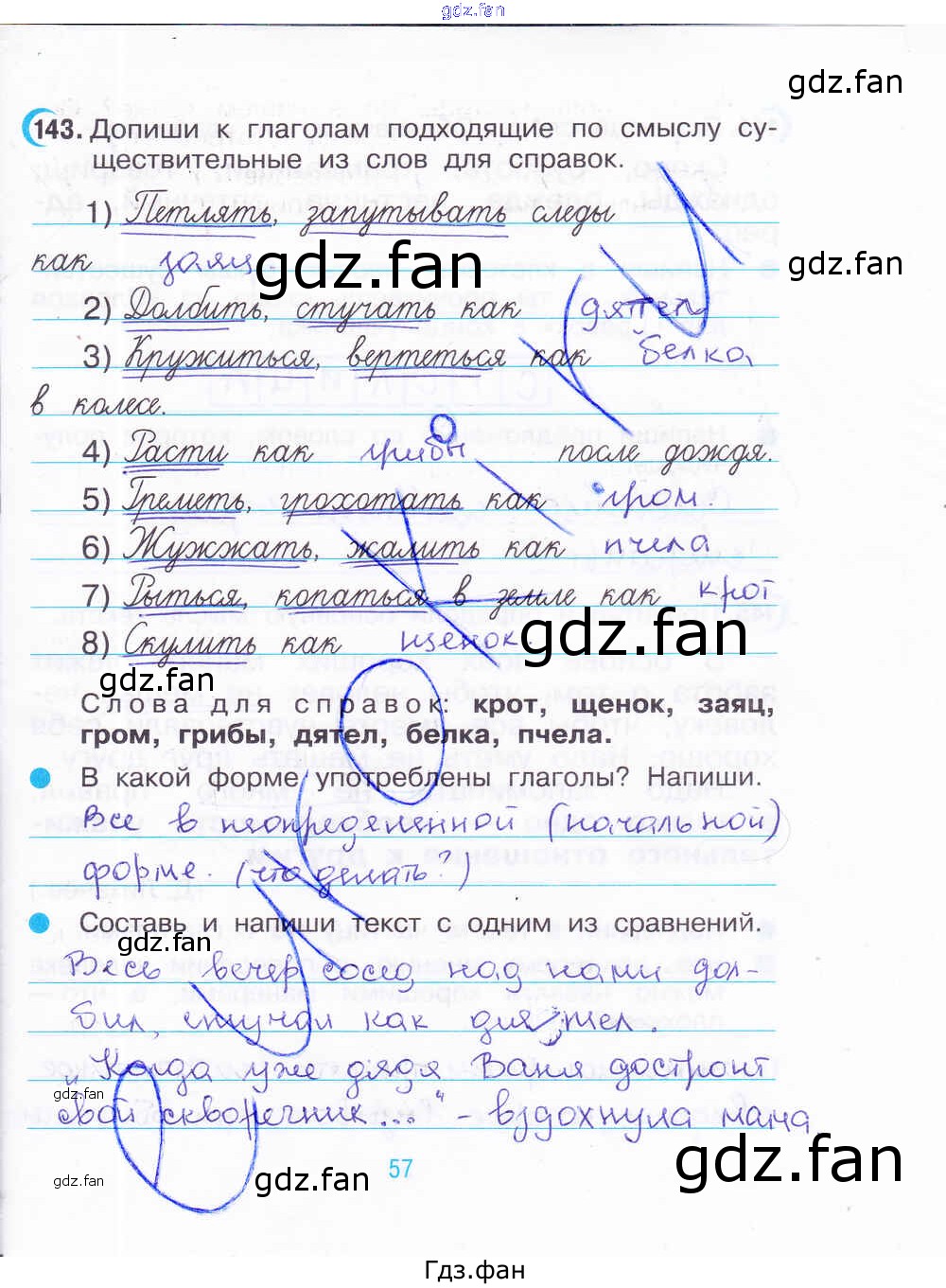 Проверка домашнего задания всегда занимает большое количество времени. На помощь приходит ГДЗ фан по Русскому языку третьего класса. Здесь собраны популярные ответы на 57 (№ 143) Русский язык 3 класс рабочая тетрадь Рамзаева Т.Г.