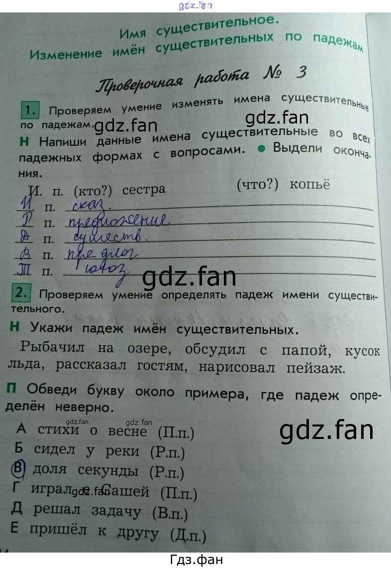 ГДЗ - онлайн ответы на 14 (Проверочная работа № 3 № 1, 2) Русский язык для 4 класса к Проверочным и контрольным работам Школа 2100 Бунеева 2017