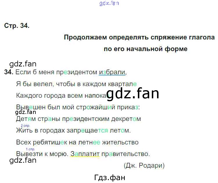 Проверка домашнего задания всегда занимает большое количество времени. На помощь приходит ГДЗ фан по Русскому языку четвертого класса. Здесь собраны популярные ответы на 34 (Продолжаем определять спряжение глагола по его начальной форме № 34) Русский язык 4 класс тетрадь для самостоятельных работ Байкова Т.А.