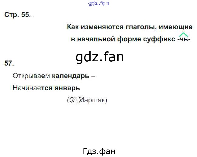 Проверка домашнего задания всегда занимает большое количество времени. На помощь приходит ГДЗ фан по Русскому языку четвертого класса. Здесь собраны популярные ответы на 55 (Как изменяются глаголы имеющие в начальной форме суффикс -чь- № 57) Русский язык 4 класс тетрадь для самостоятельных работ Байкова Т.А.