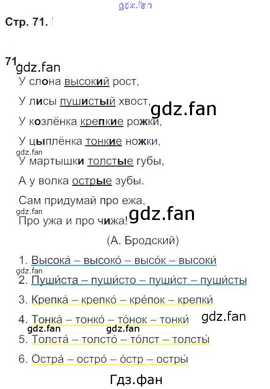 Проверка домашнего задания всегда занимает большое количество времени. На помощь приходит ГДЗ фан по Русскому языку четвертого класса. Здесь собраны популярные ответы на 71 (№ 71) Русский язык 4 класс тетрадь для самостоятельных работ Байкова Т.А.
