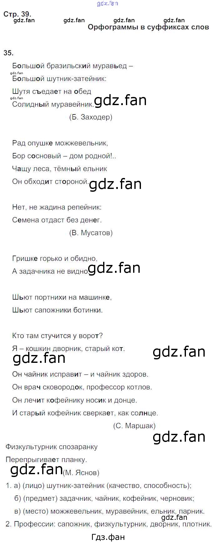 Проверка домашнего задания всегда занимает большое количество времени. На помощь приходит ГДЗ фан по Русскому языку четвертого класса. Здесь собраны популярные ответы на 39 (Орфограммы в суффиксах слов № 35) Русский язык 4 класс тетрадь для самостоятельных работ Байкова Т.А.