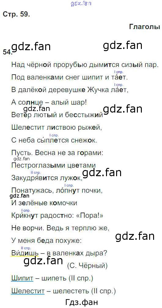 Проверка домашнего задания всегда занимает большое количество времени. На помощь приходит ГДЗ фан по Русскому языку четвертого класса. Здесь собраны популярные ответы на 59 (Глаголы № 54) Русский язык 4 класс тетрадь для самостоятельных работ Байкова Т.А.