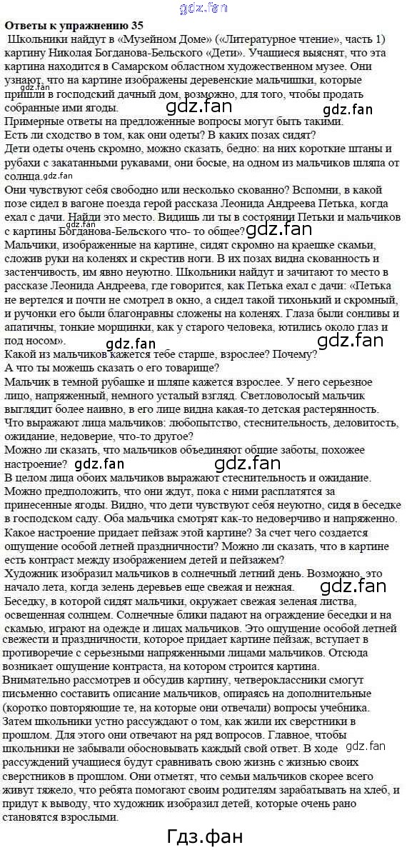 Проверка домашнего задания всегда занимает большое количество времени. На помощь приходит ГДЗ фан по Русскому языку четвертого класса. Здесь собраны популярные ответы на 35 (стр. 88) Русский язык 4 класс Каленчук М.Л.