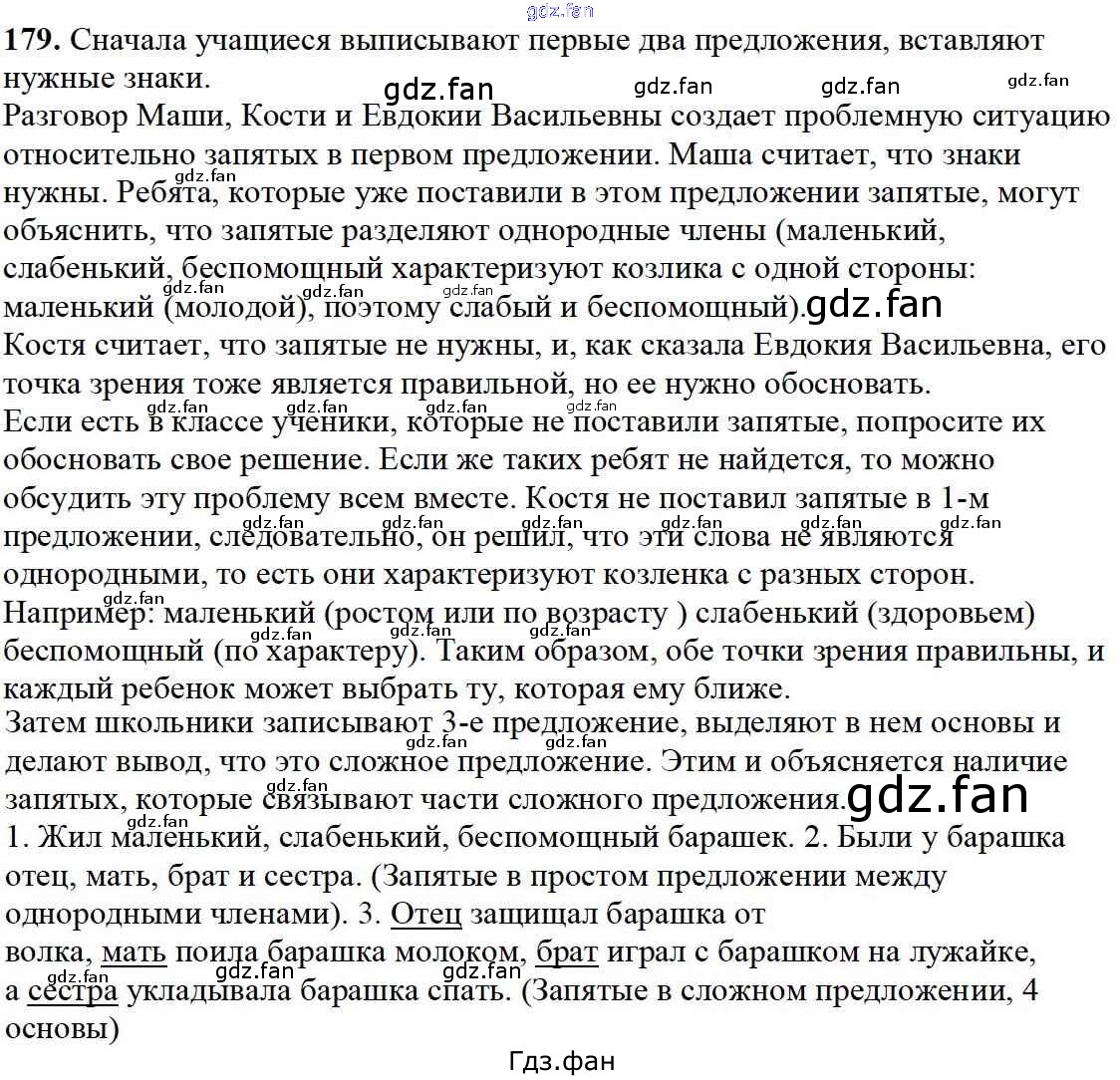 Проверка домашнего задания всегда занимает большое количество времени. На помощь приходит ГДЗ фан по Русскому языку четвертого класса. Здесь собраны популярные ответы на 179 (стр. 180) Русский язык 4 класс Каленчук М.Л.