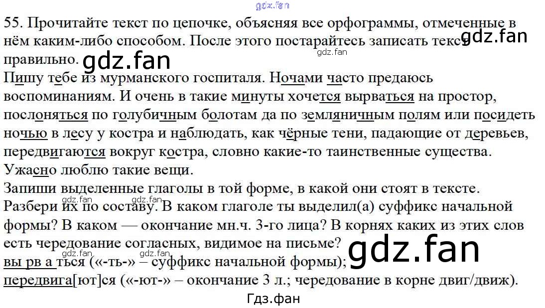 Проверка домашнего задания всегда занимает большое количество времени. На помощь приходит ГДЗ фан по Русскому языку четвертого класса. Здесь собраны популярные ответы на 55 (стр. 63) Русский язык 4 класс Каленчук М.Л.