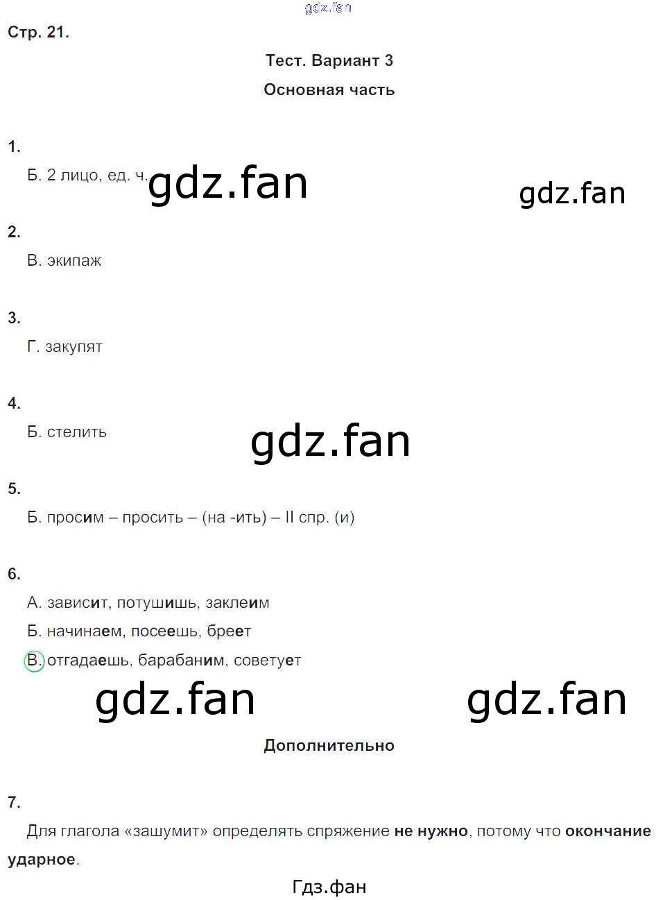 Проверка домашнего задания всегда занимает большое количество времени. На помощь приходит ГДЗ фан по Русскому языку четвертого класса. Здесь собраны популярные ответы на 21 (Вариант 3. № 1, 2, 3, 4, 5, 6, 7) Русский язык 4 класс тесты и самостоятельные работы для текущего контроля Калинина О.Б. (к уч. Желтовской)