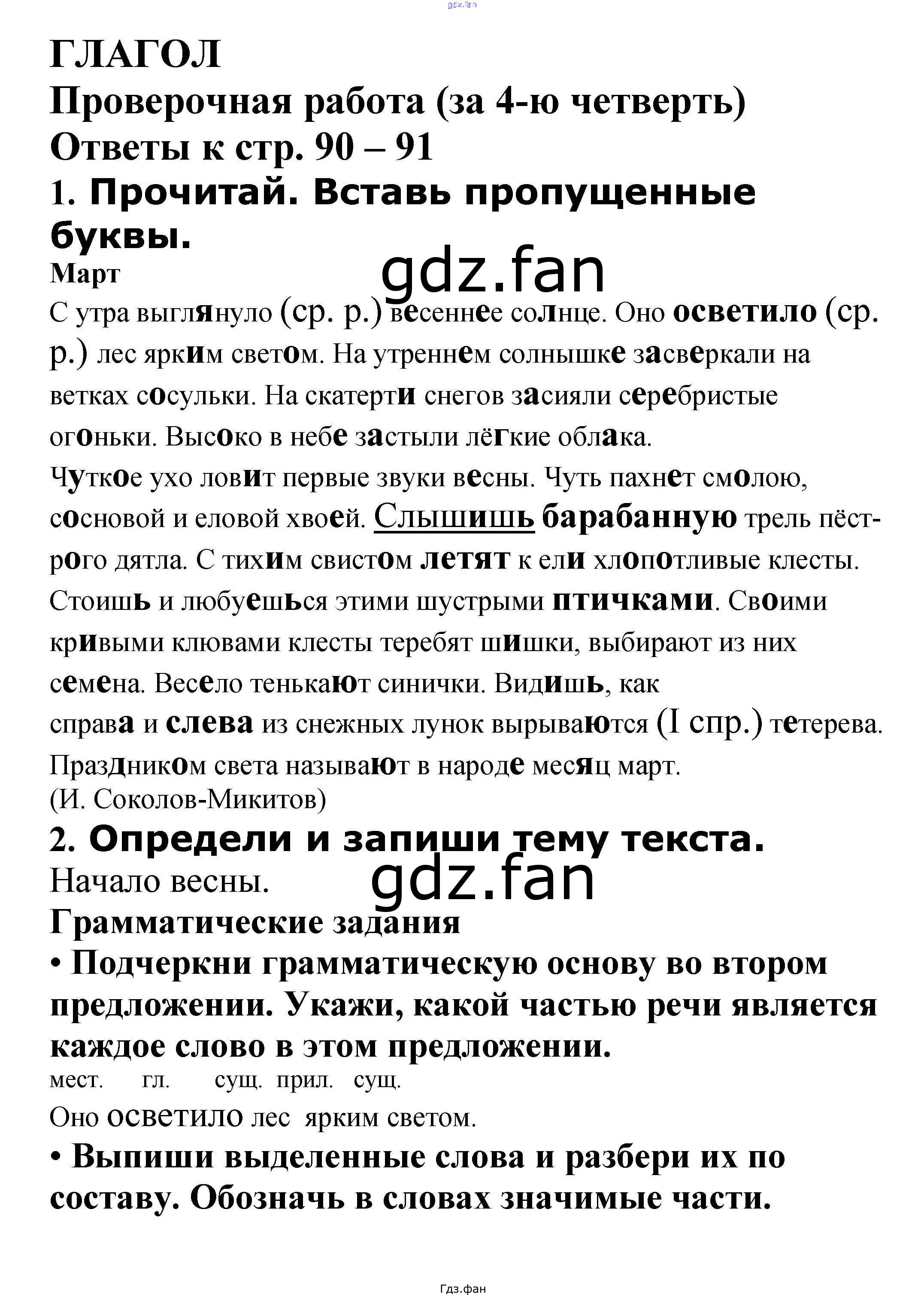 Проверка домашнего задания всегда занимает большое количество времени. На помощь приходит ГДЗ фан по Русскому языку четвертого класса. Здесь собраны популярные ответы на 90 – 91 (Проверочная работа № 1, 2) Русский язык 4 класс проверочные работы Канакина В.П.