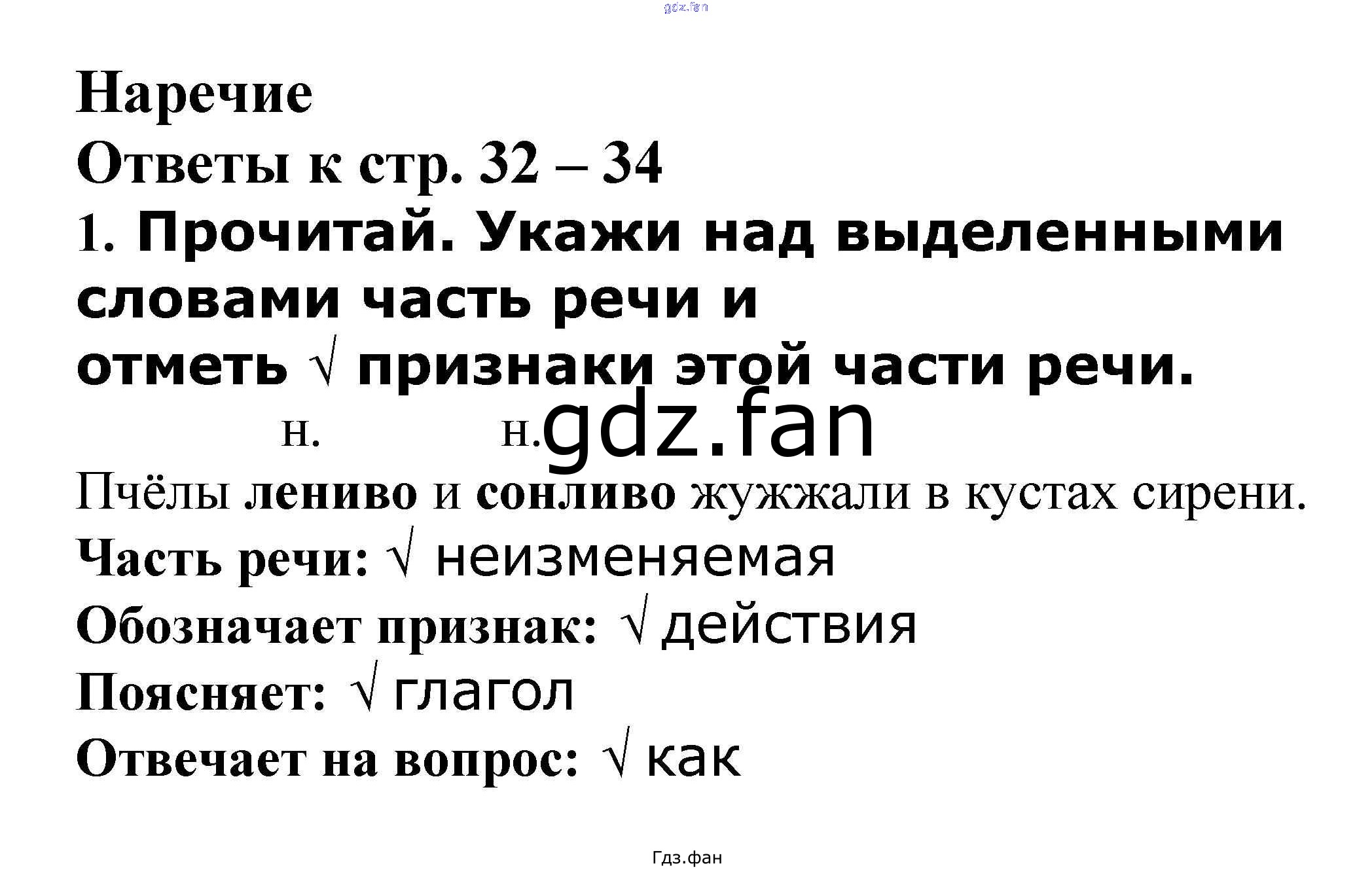 Проверка домашнего задания всегда занимает большое количество времени. На помощь приходит ГДЗ фан по Русскому языку четвертого класса. Здесь собраны популярные ответы на 32 – 34 (Наречие № 1, 2, 3, 4, 5, 6, 7, 8, 9, 10, 11) Русский язык 4 класс проверочные работы Канакина В.П.