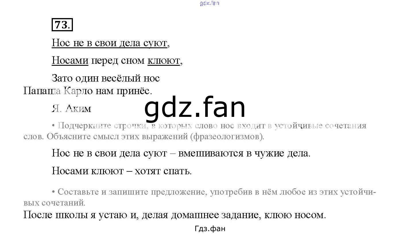 Проверка домашнего задания всегда занимает большое количество времени. На помощь приходит ГДЗ фан по Русскому языку четвертого класса. Здесь собраны популярные ответы на 73 (стр. 35) Русский язык 4 класс рабочая тетрадь Канакина В.П.