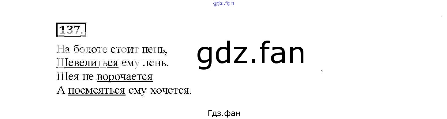 Проверка домашнего задания всегда занимает большое количество времени. На помощь приходит ГДЗ фан по Русскому языку четвертого класса. Здесь собраны популярные ответы на 137 (стр. 60) Русский язык 4 класс рабочая тетрадь Канакина В.П.
