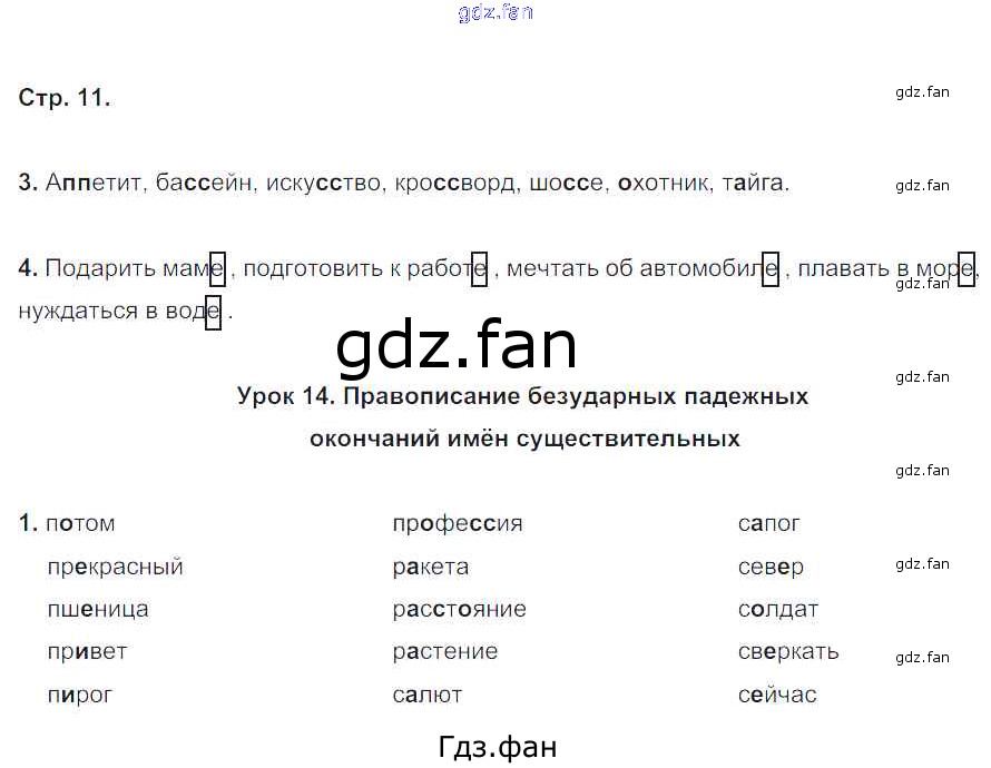 Проверка домашнего задания всегда занимает большое количество времени. На помощь приходит ГДЗ фан по Русскому языку четвертого класса. Здесь собраны популярные ответы на 11 (№ 3, 4. Урок 14 № 1) Русский язык 4 класс Пишем грамотно рабочая тетрадь Кузнецова М.И.