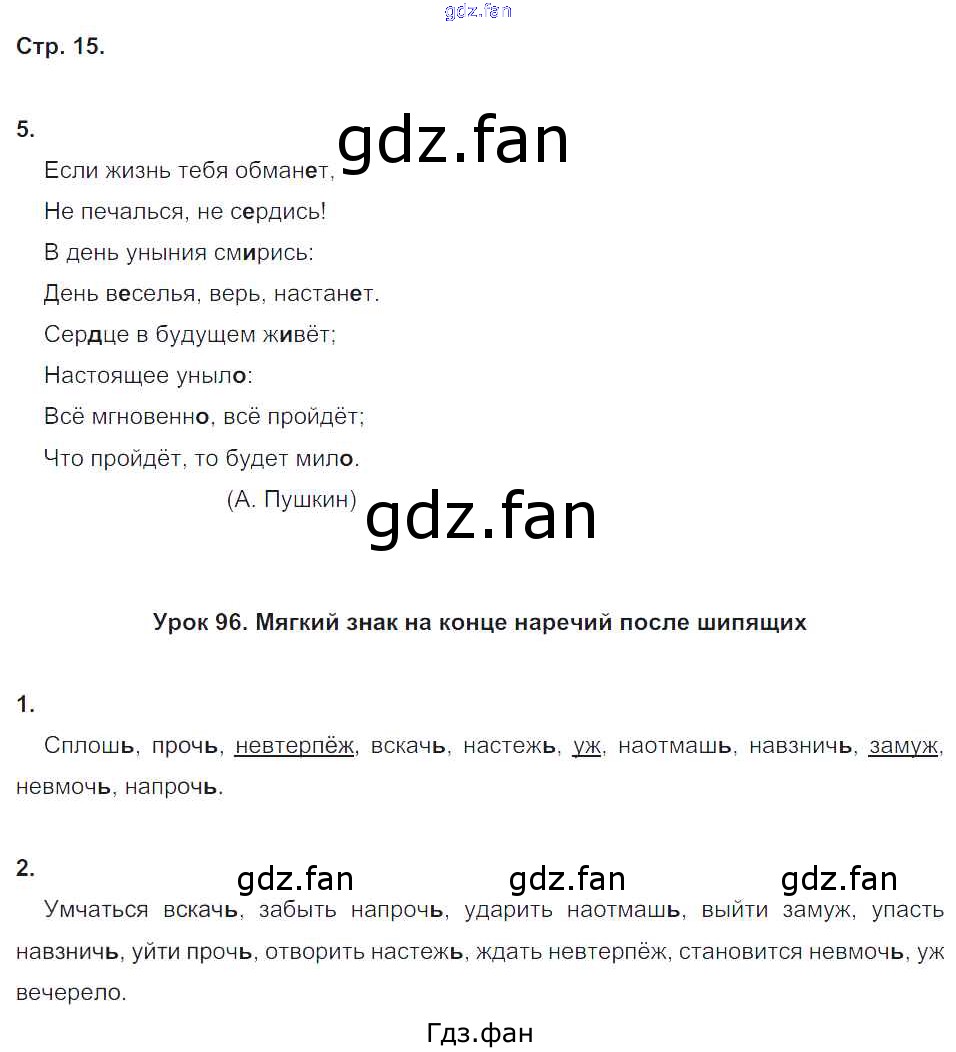 Проверка домашнего задания всегда занимает большое количество времени. На помощь приходит ГДЗ фан по Русскому языку четвертого класса. Здесь собраны популярные ответы на 15 (№ 5. Урок 96 № 1, 2) Русский язык 4 класс Пишем грамотно рабочая тетрадь Кузнецова М.И.