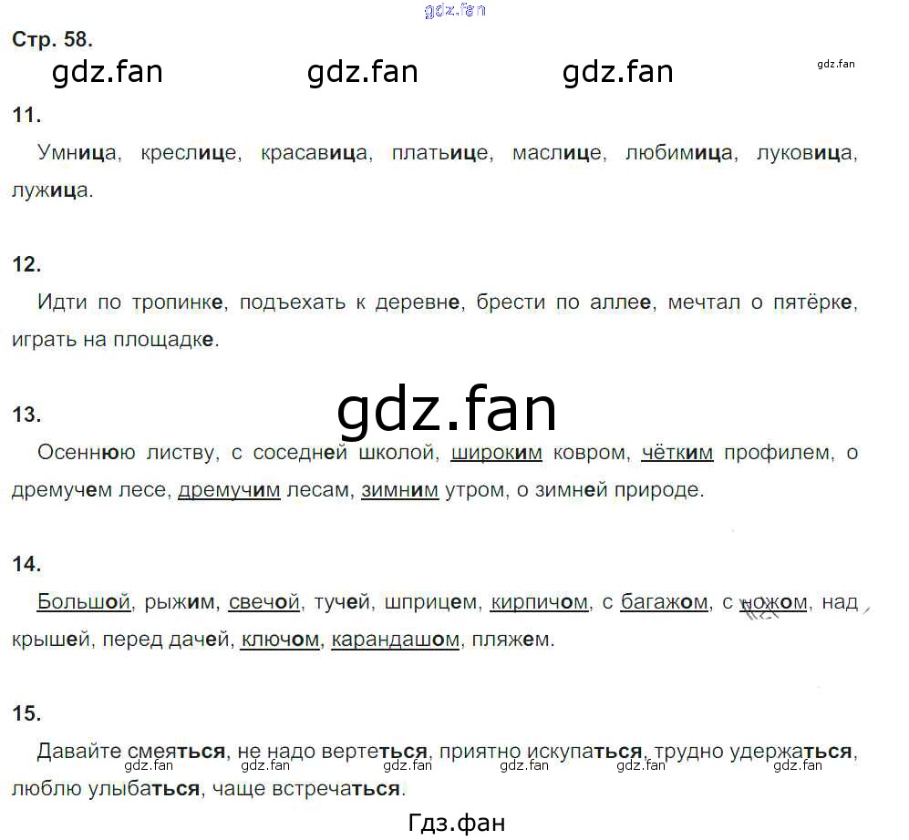 Проверка домашнего задания всегда занимает большое количество времени. На помощь приходит ГДЗ фан по Русскому языку четвертого класса. Здесь собраны популярные ответы на 58 (№ 11, 12, 13, 14, 15) Русский язык 4 класс Пишем грамотно рабочая тетрадь Кузнецова М.И.