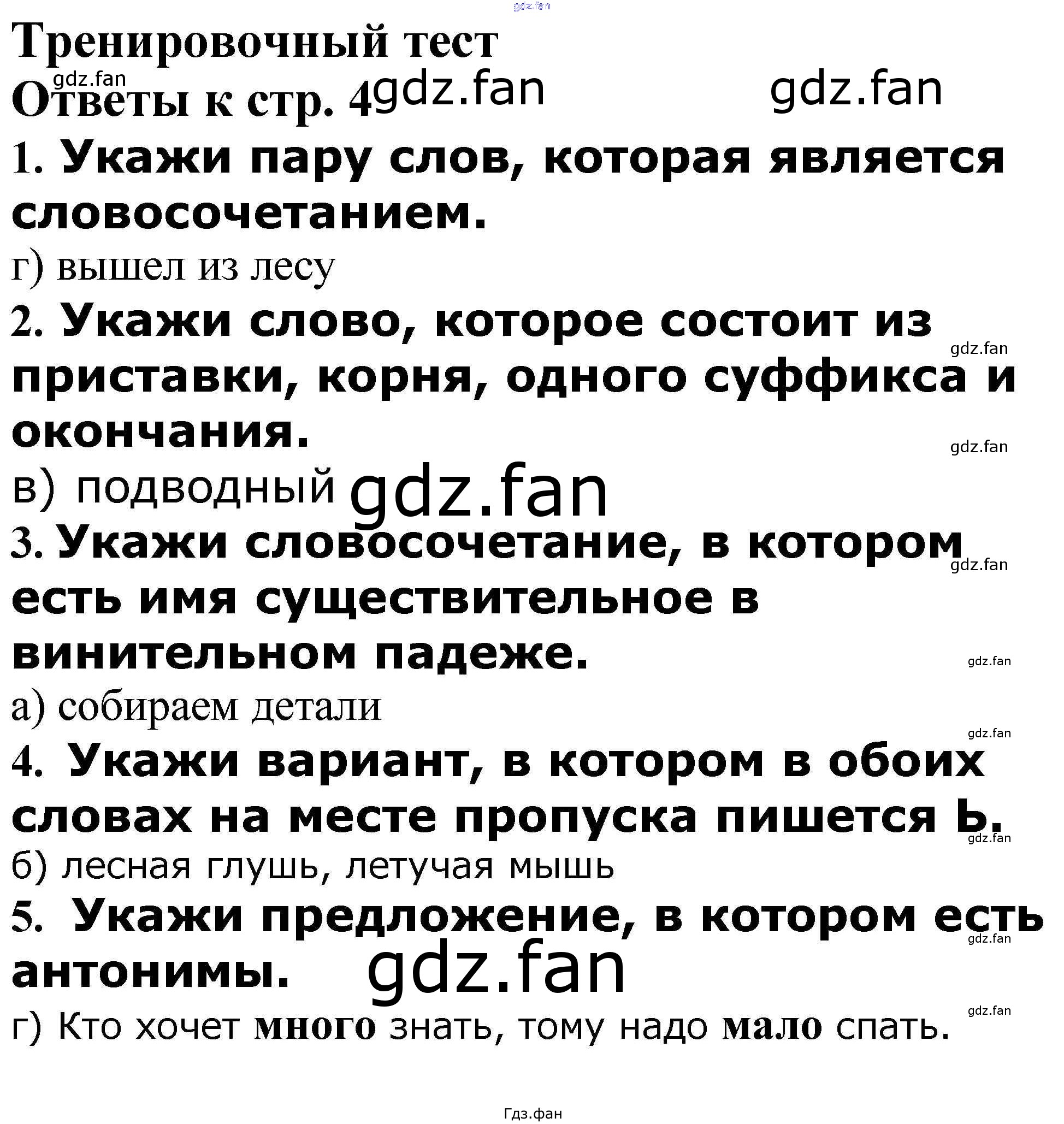 Проверка домашнего задания всегда занимает большое количество времени. На помощь приходит ГДЗ фан по Русскому языку четвертого класса. Здесь собраны популярные ответы на 4 (Тренировочный тест № 1, 2, 3, 4, 5) Русский язык 4 класс проверочные и контрольные работы Максимова Т.Н.