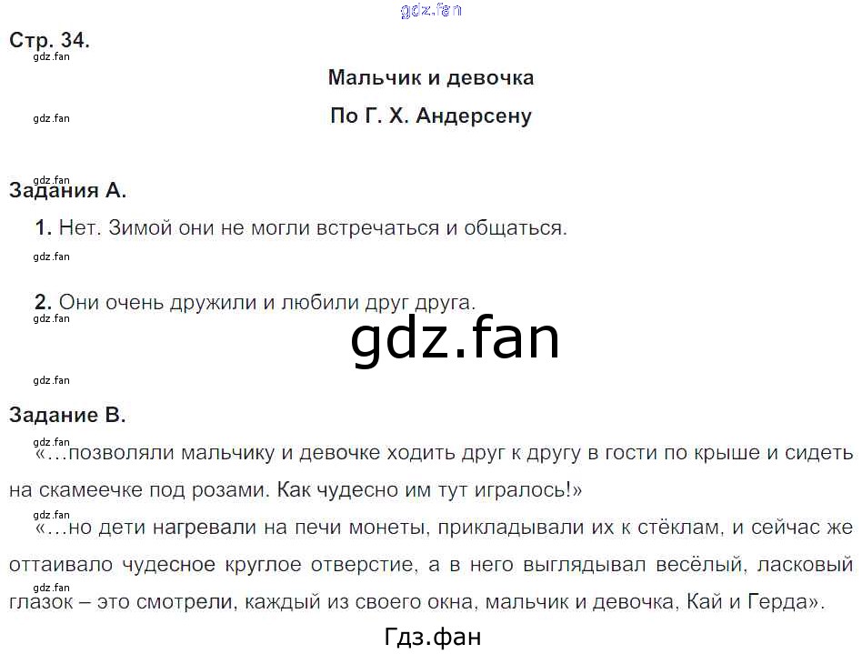 Проверка домашнего задания всегда занимает большое количество времени. На помощь приходит ГДЗ фан по Русскому языку четвертого класса. Здесь собраны популярные ответы на 34 (Мальчик и девочка. Г.Х. Андерсону № A, B) Русский язык 4 класс Комплексный тренажёр Мишакина Т.Л.