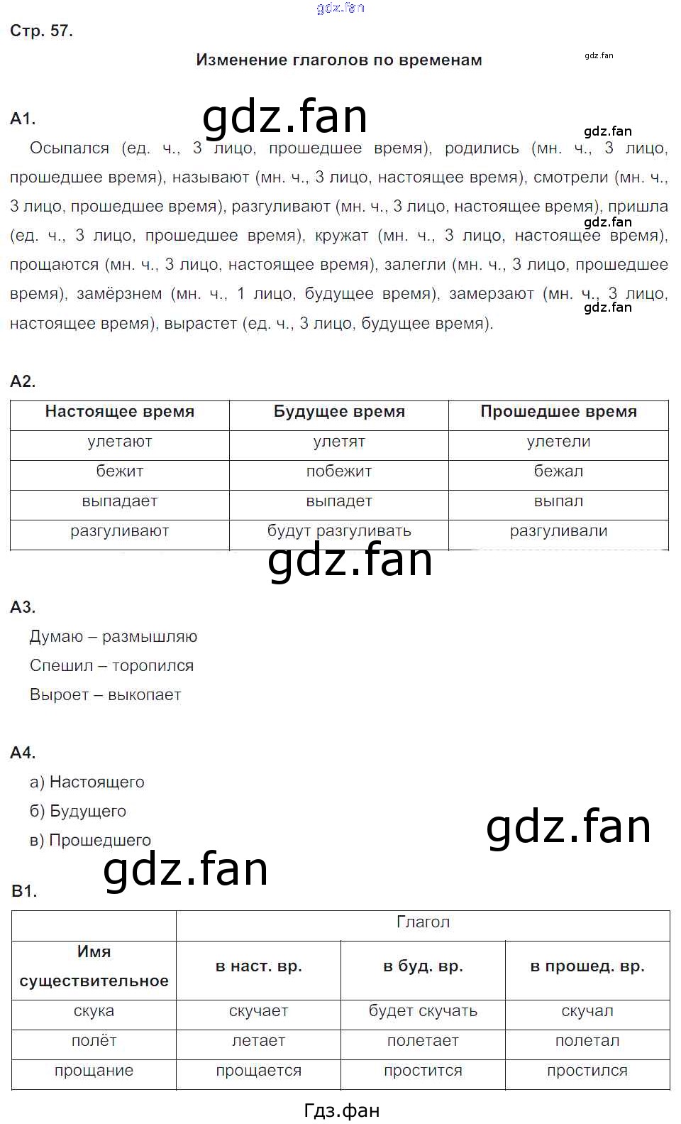 Проверка домашнего задания всегда занимает большое количество времени. На помощь приходит ГДЗ фан по Русскому языку четвертого класса. Здесь собраны популярные ответы на 57 (Изменение глаголов по временам № A1, A2, A3, A4, B1) Русский язык 4 класс Комплексный тренажёр Мишакина Т.Л.