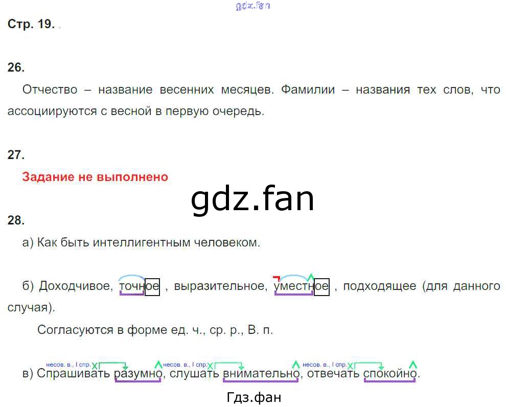 Проверка домашнего задания всегда занимает большое количество времени. На помощь приходит ГДЗ фан по Русскому языку четвертого класса. Здесь собраны популярные ответы на 19 (№ 26, 28) Русский язык 4 класс рабочая тетрадь Нечаева Н.В.