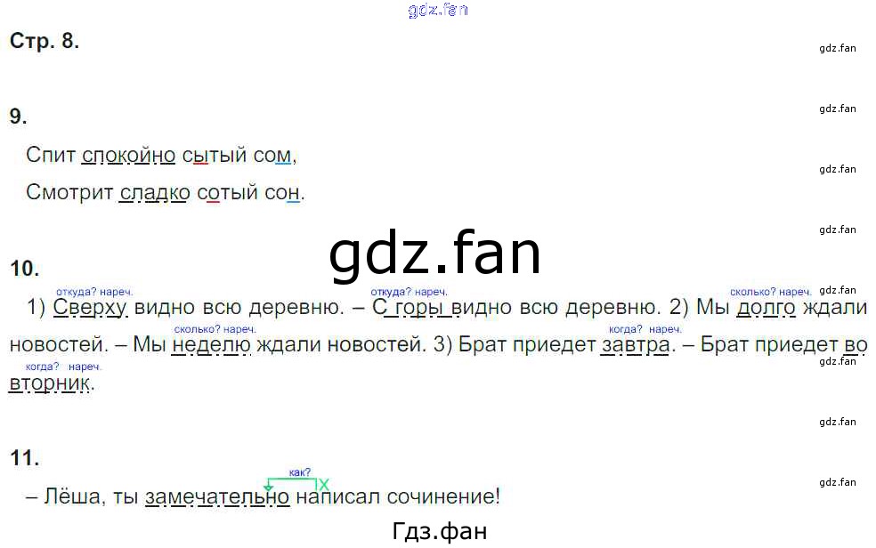 Проверка домашнего задания всегда занимает большое количество времени. На помощь приходит ГДЗ фан по Русскому языку четвертого класса. Здесь собраны популярные ответы на 8 (№ 9, 10, 11) Русский язык 4 класс рабочая тетрадь Нечаева Н.В.