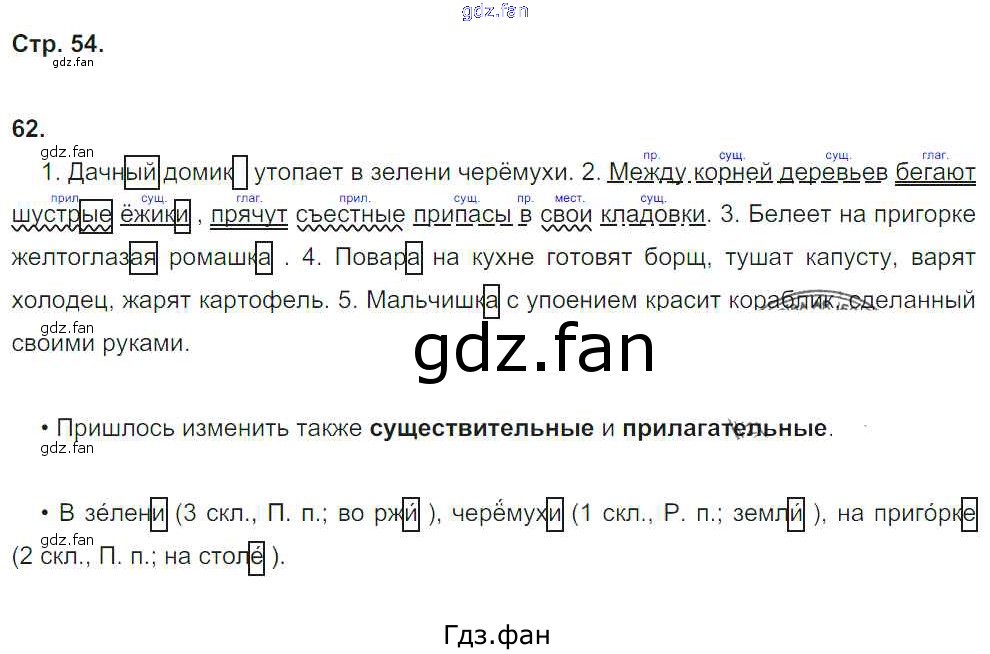 Проверка домашнего задания всегда занимает большое количество времени. На помощь приходит ГДЗ фан по Русскому языку четвертого класса. Здесь собраны популярные ответы на 54 (№ 62) Русский язык 4 класс рабочая тетрадь Песняева Н.А.