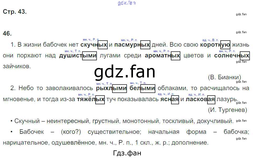 Проверка домашнего задания всегда занимает большое количество времени. На помощь приходит ГДЗ фан по Русскому языку четвертого класса. Здесь собраны популярные ответы на 43 (№ 46) Русский язык 4 класс рабочая тетрадь Песняева Н.А.