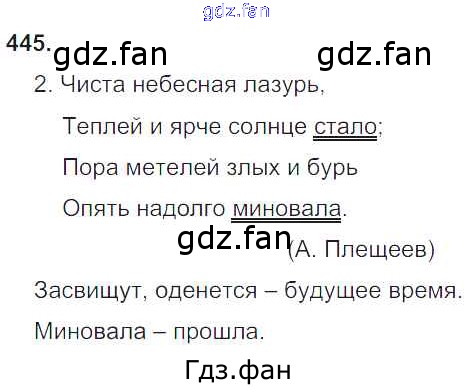 Проверка домашнего задания всегда занимает большое количество времени. На помощь приходит ГДЗ фан по Русскому языку четвертого класса. Здесь собраны популярные ответы на 445 (стр. 83) Русский язык 4 класс Рамзаева Т.Г.