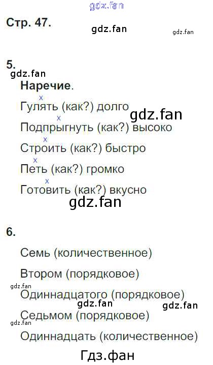 Проверка домашнего задания всегда занимает большое количество времени. На помощь приходит ГДЗ фан по Русскому языку четвертого класса. Здесь собраны популярные ответы на 47 (№ 5, 6) Русский язык 4 класс тетрадь для контрольных работ Романова В.Ю.