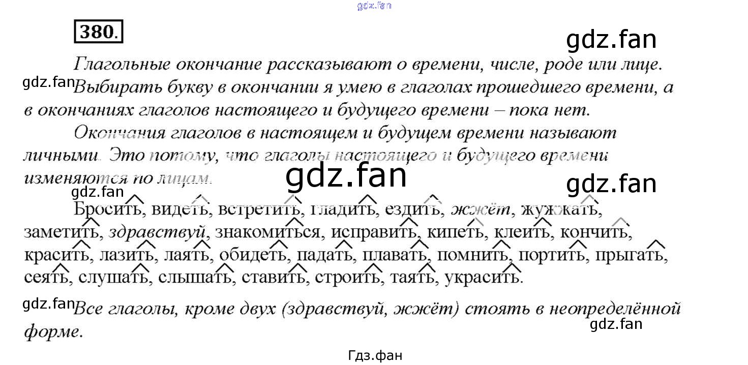 Проверка домашнего задания всегда занимает большое количество времени. На помощь приходит ГДЗ фан по Русскому языку четвертого класса. Здесь собраны популярные ответы на 380 (стр. 29) Русский язык 4 класс Соловейчик М.С.