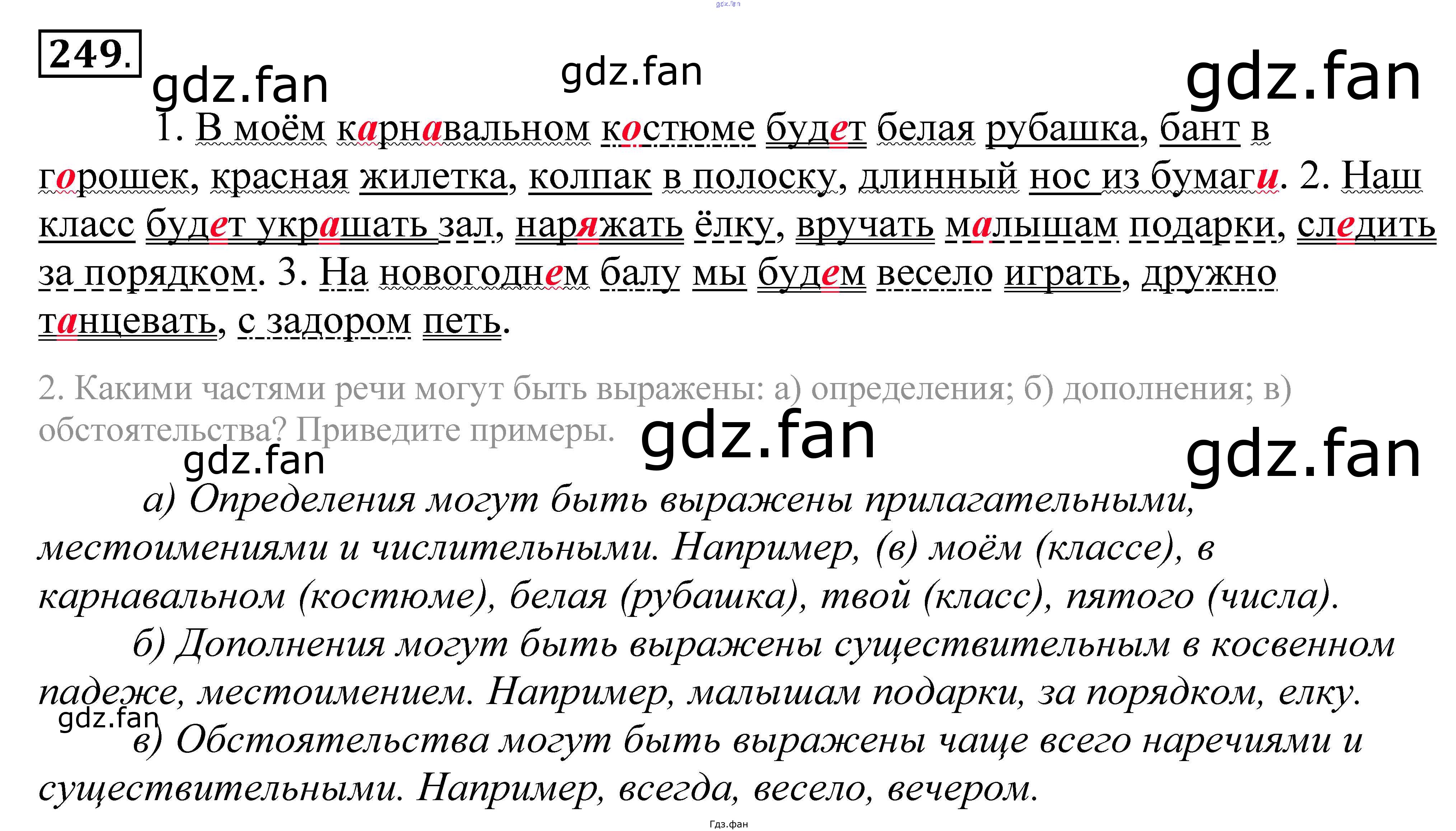 Проверка домашнего задания всегда занимает большое количество времени. На помощь приходит ГДЗ фан по Русскому языку пятого класса. Здесь собраны популярные ответы на 249 (стр. 78) Русский язык 5 класс Купалова