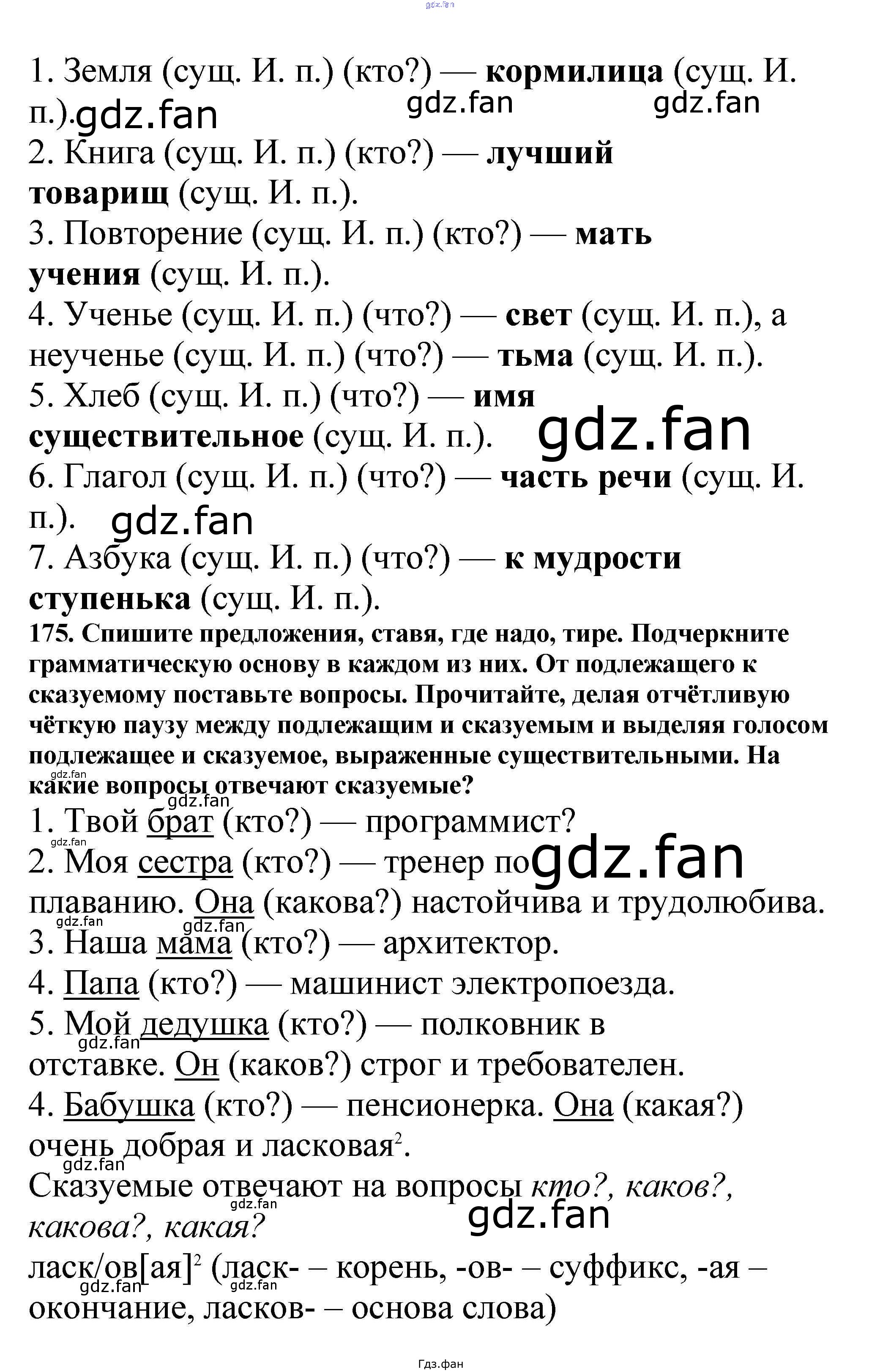 Проверка домашнего задания всегда занимает большое количество времени. На помощь приходит ГДЗ фан по Русскому языку пятого класса. Здесь собраны популярные ответы на 175 (стр. 86) Русский язык 5 класс Ладыженская Т.А.