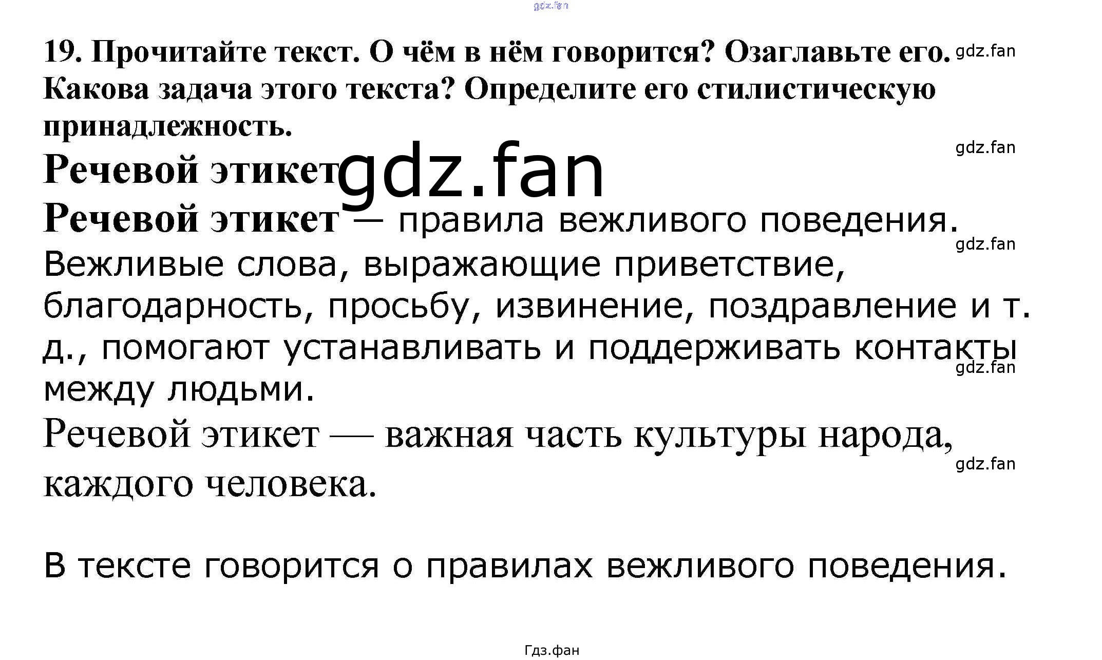 Проверка домашнего задания всегда занимает большое количество времени. На помощь приходит ГДЗ фан по Русскому языку пятого класса. Здесь собраны популярные ответы на 19 (стр. 14) Русский язык 5 класс Ладыженская Т.А.