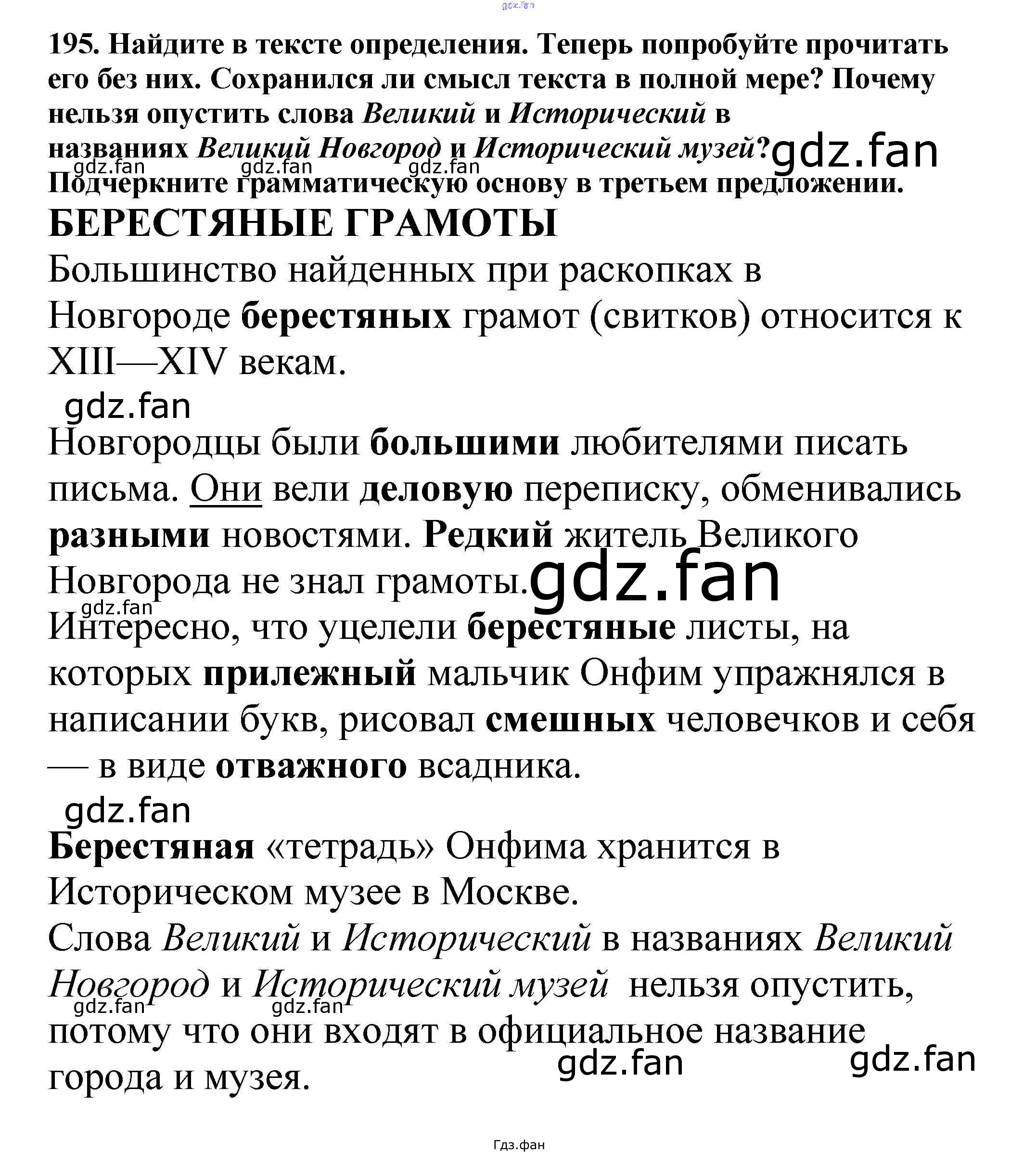Проверка домашнего задания всегда занимает большое количество времени. На помощь приходит ГДЗ фан по Русскому языку пятого класса. Здесь собраны популярные ответы на 195 (стр. 95) Русский язык 5 класс Ладыженская Т.А.
