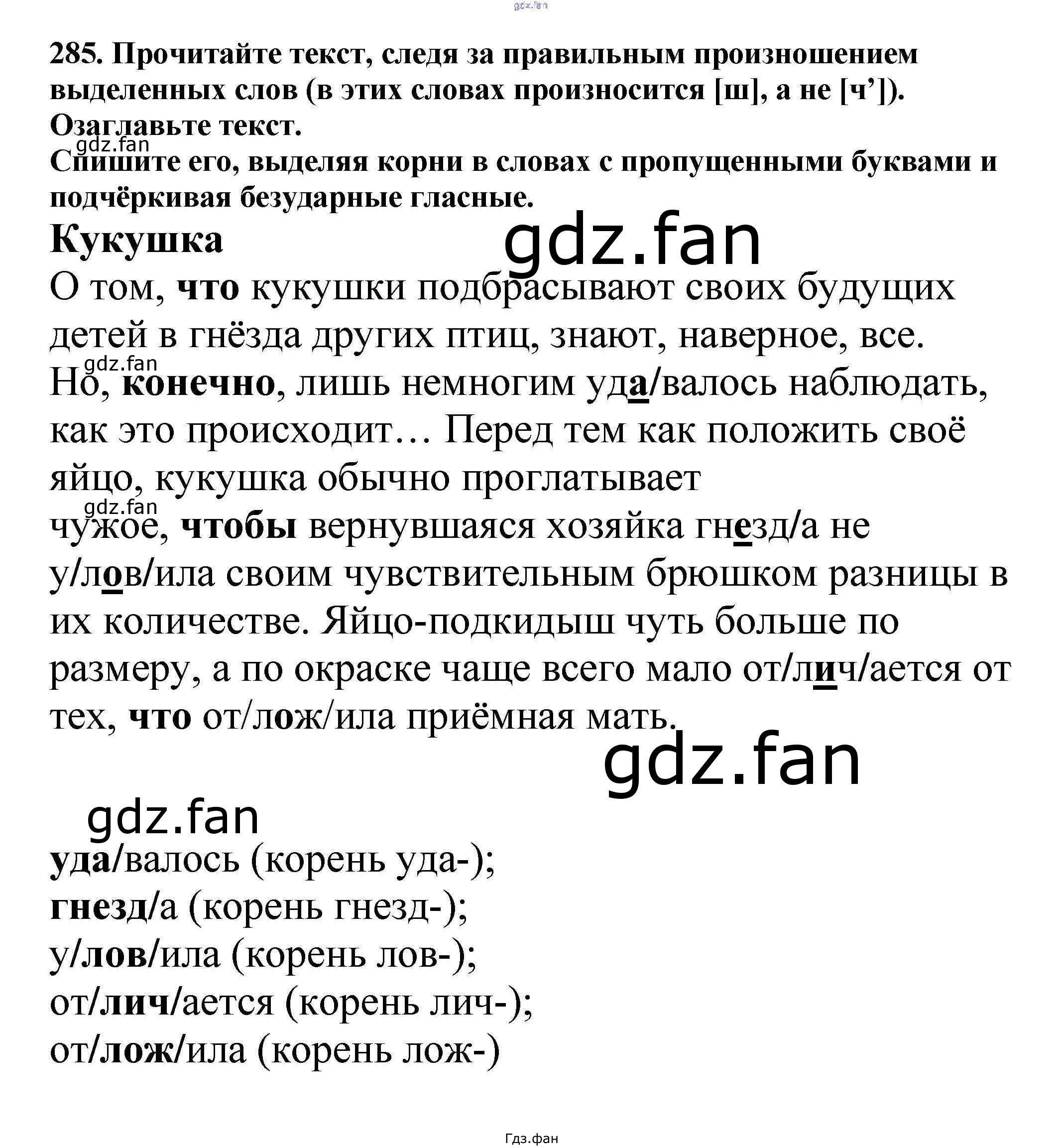 Проверка домашнего задания всегда занимает большое количество времени. На помощь приходит ГДЗ фан по Русскому языку пятого класса. Здесь собраны популярные ответы на 285 (стр. 141) Русский язык 5 класс Ладыженская Т.А.