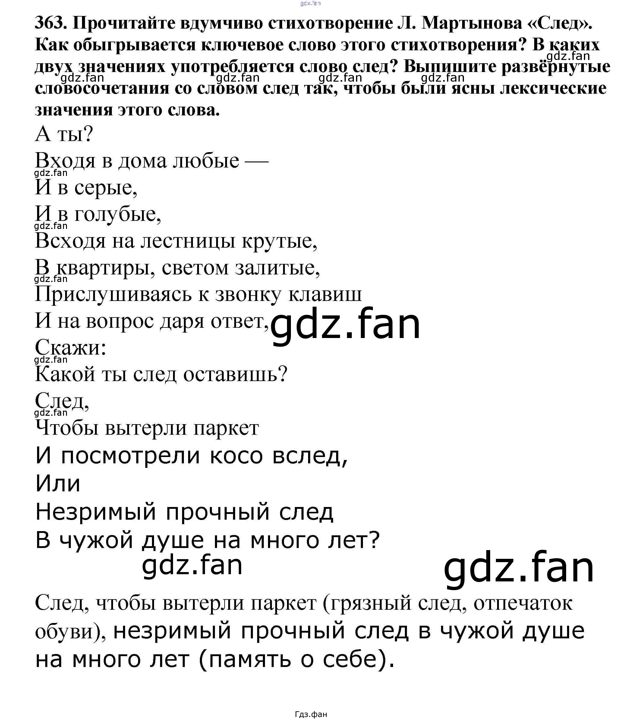Проверка домашнего задания всегда занимает большое количество времени. На помощь приходит ГДЗ фан по Русскому языку пятого класса. Здесь собраны популярные ответы на 363 (стр. 174) Русский язык 5 класс Ладыженская Т.А.